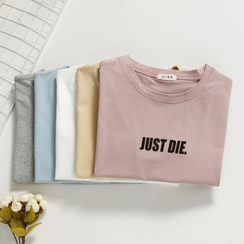 100% Cotton Tshirt Women Tops Casual coffee Color Women’s T Shirt Short Sleeve HUST DIE T-shirt Tees 2018 summer high quality