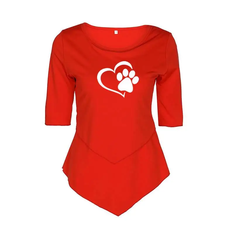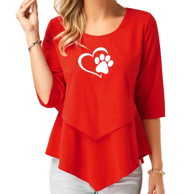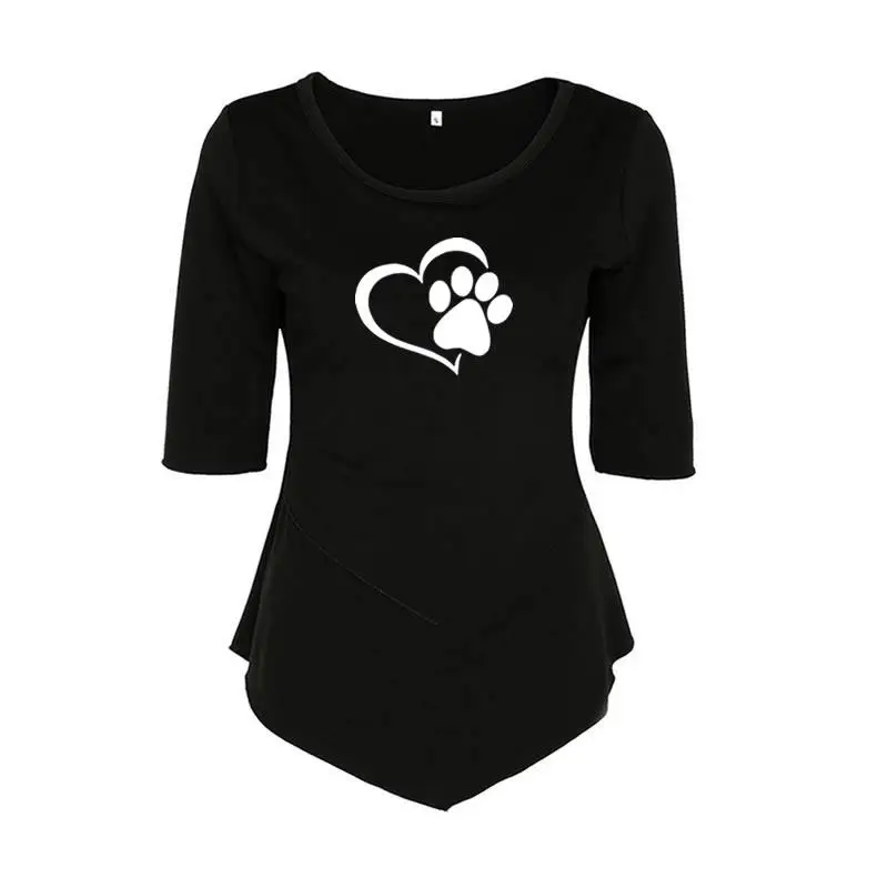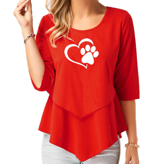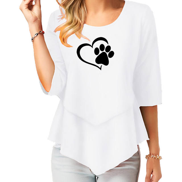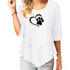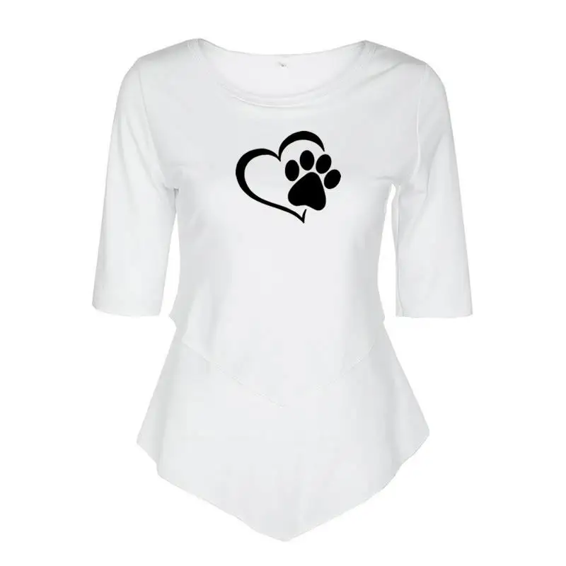 2018 Fashion Dog Paw Print T-Shirt Women O-neck Cotton Tops Half Sleeve New Irregular Cute Printing Femal Shirt for Woman