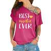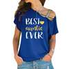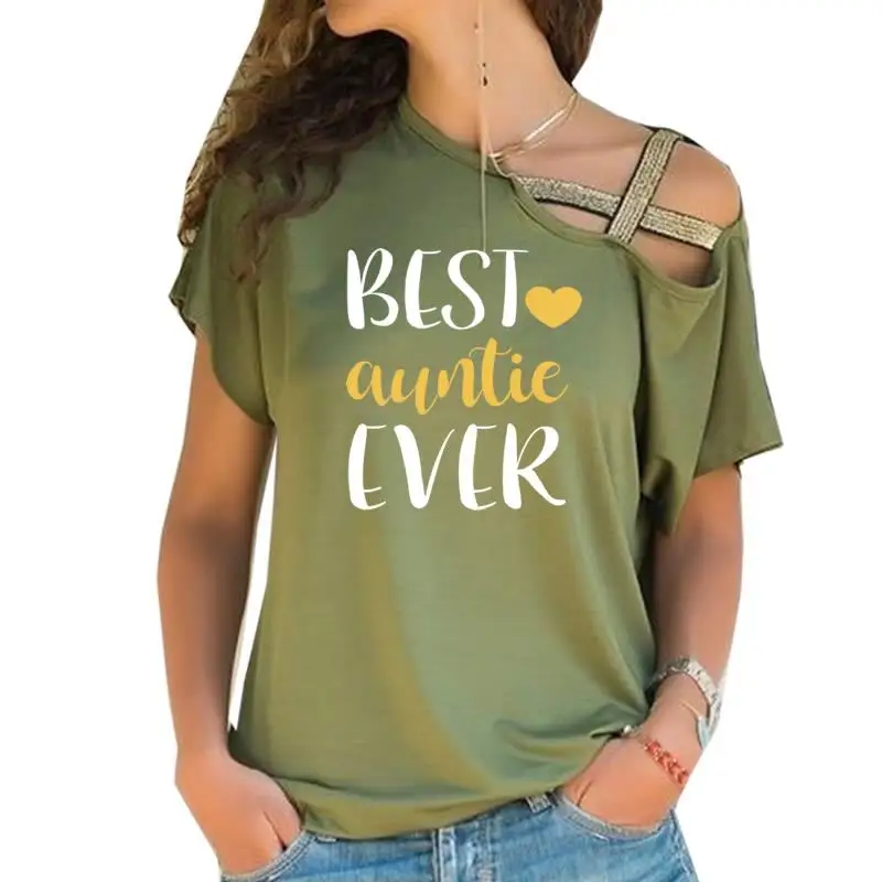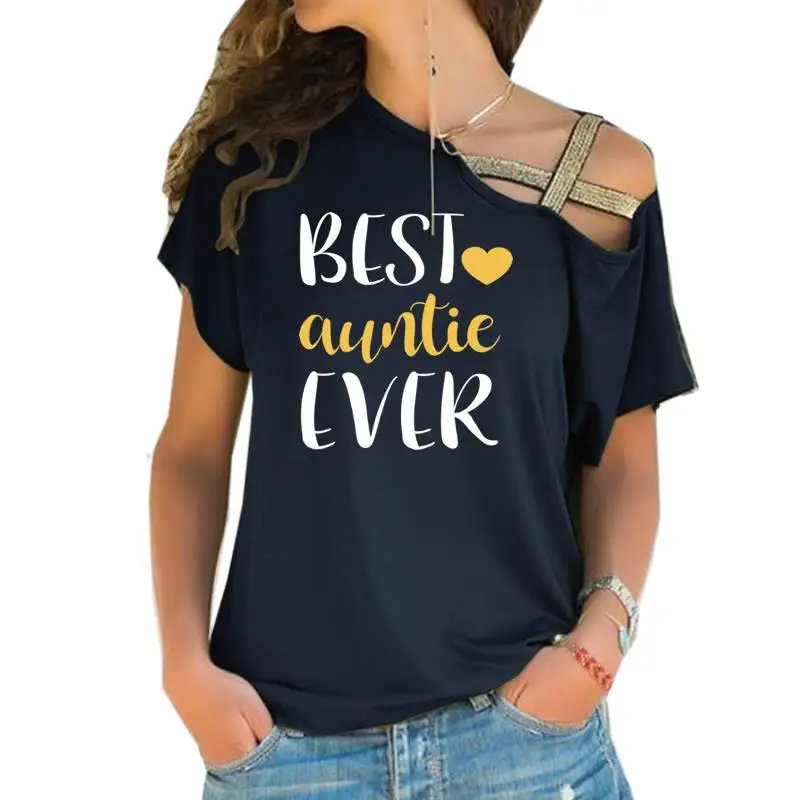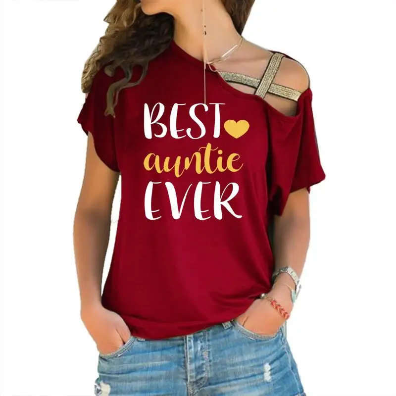 2018 New Fashion Best Auntie Ever Letters Print Cross T-Shirt Female Tshirt Women Off Shoulder T Shirt for Female