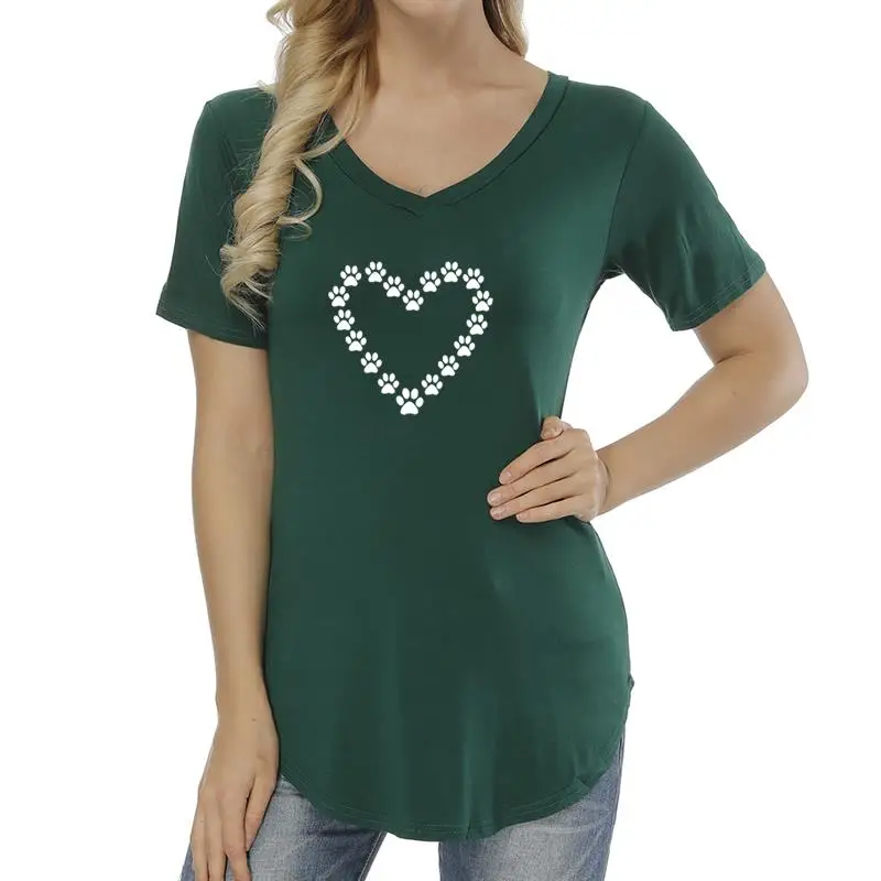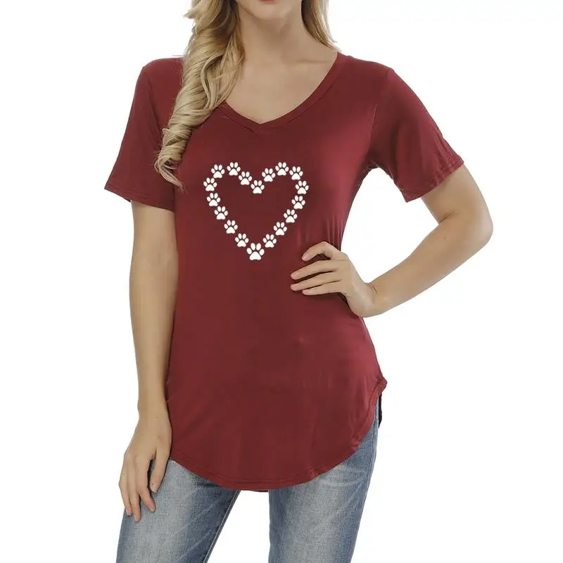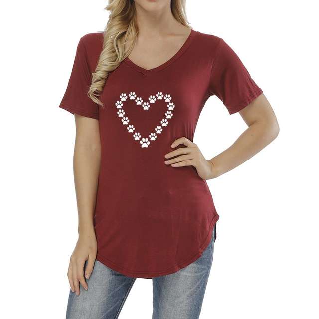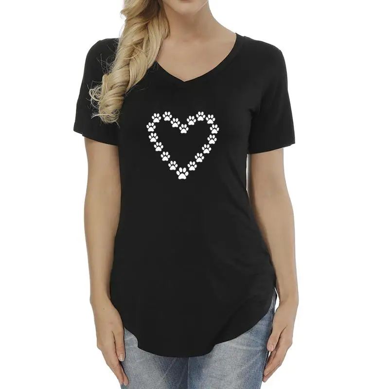 2018 New Fashion Dog Cat Paw Heart Cute Pattern Print T-Shirt Female Top Shirt Funny Harajuku Women T-shirt Plus Size