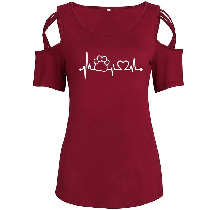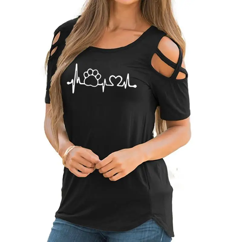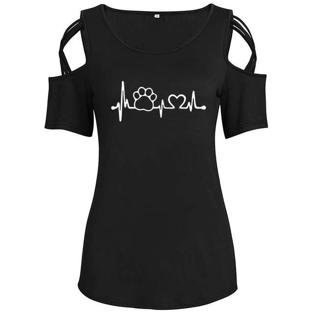 2018 New Fashion Dog Paw Print T-Shirt Women Tshirt Top Casual Short Sleeve Cotton Shirt Women Silicone Christmas Gift