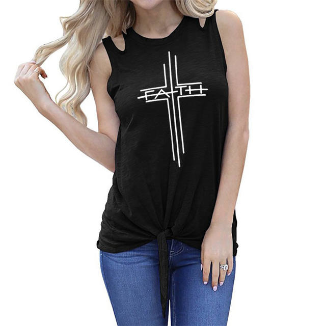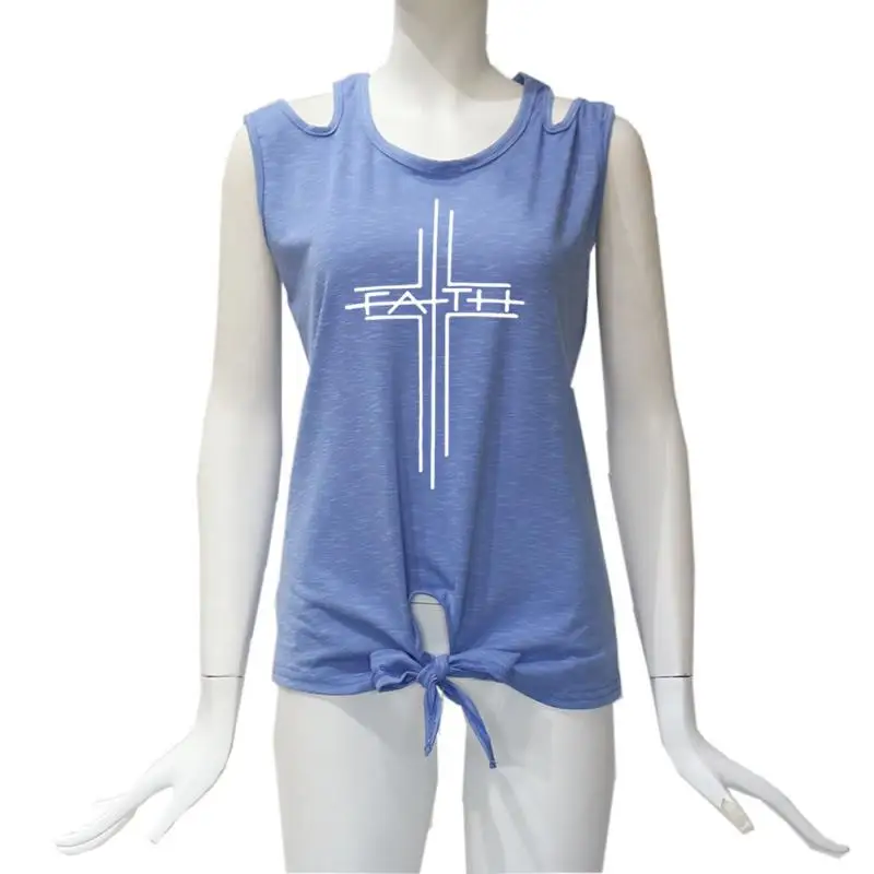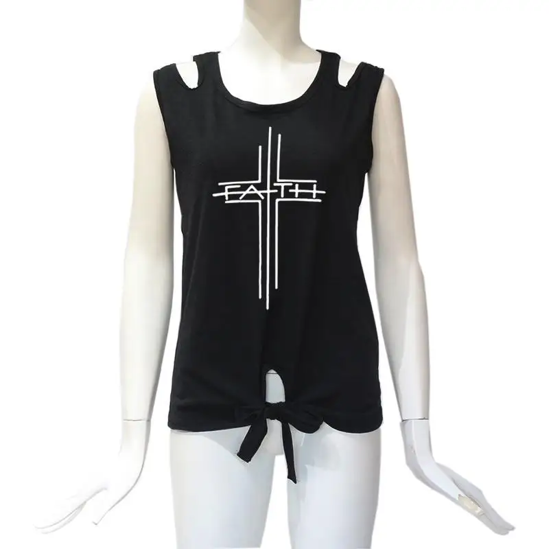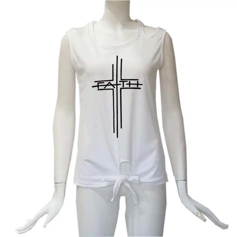 2018 New Fashion Faith Print Shirt Women T-Shirt Casual Cotton Sleeveless Tops Female Off Shoulder Shirts for Woman