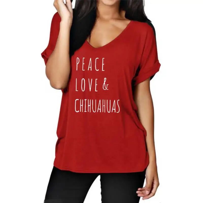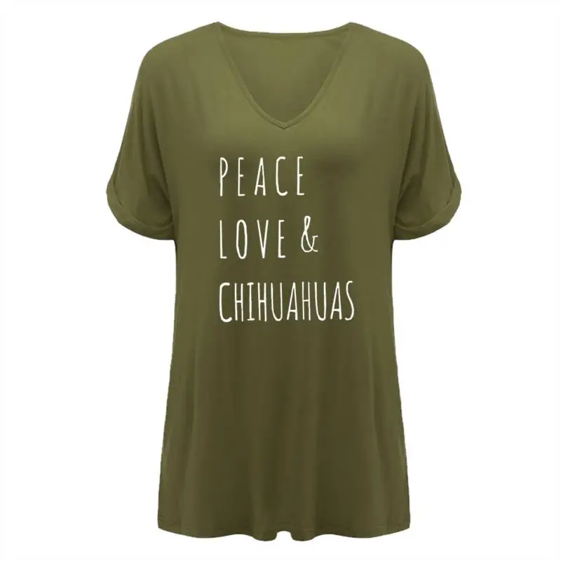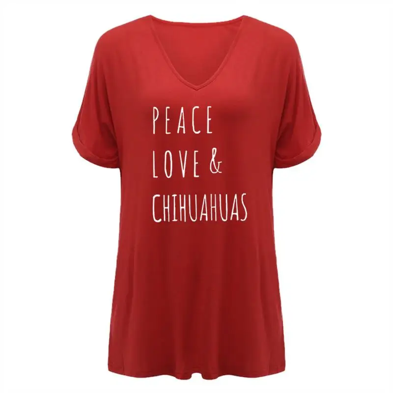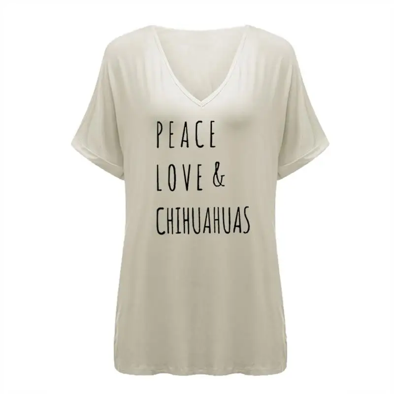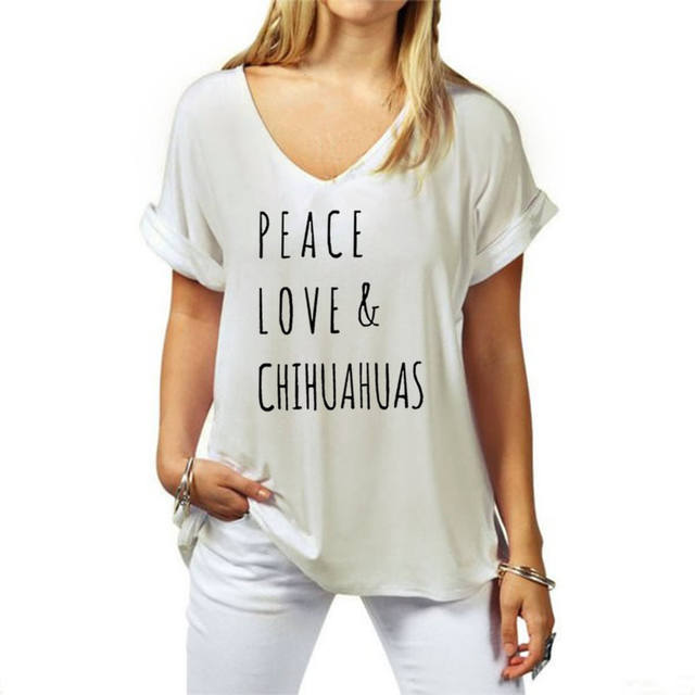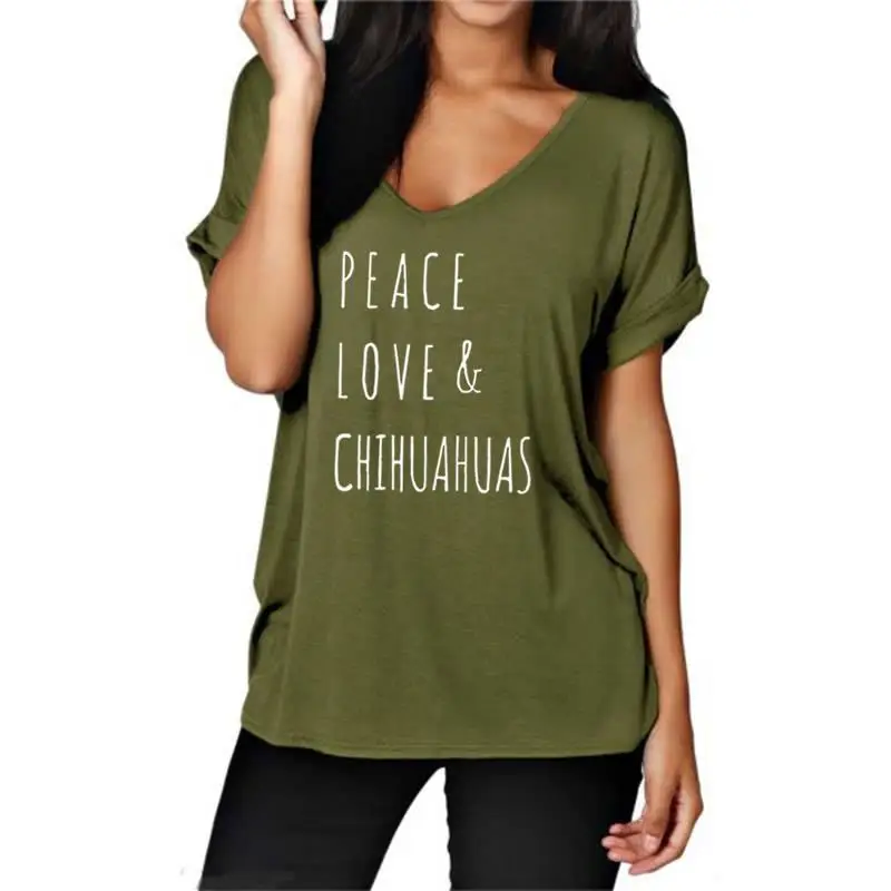 2018 New Fashion PEACE LOVE CHIHUAHUAS Print Harajuku T-Shirt Tops Summer Funny Femme Japanese Christmas Gift