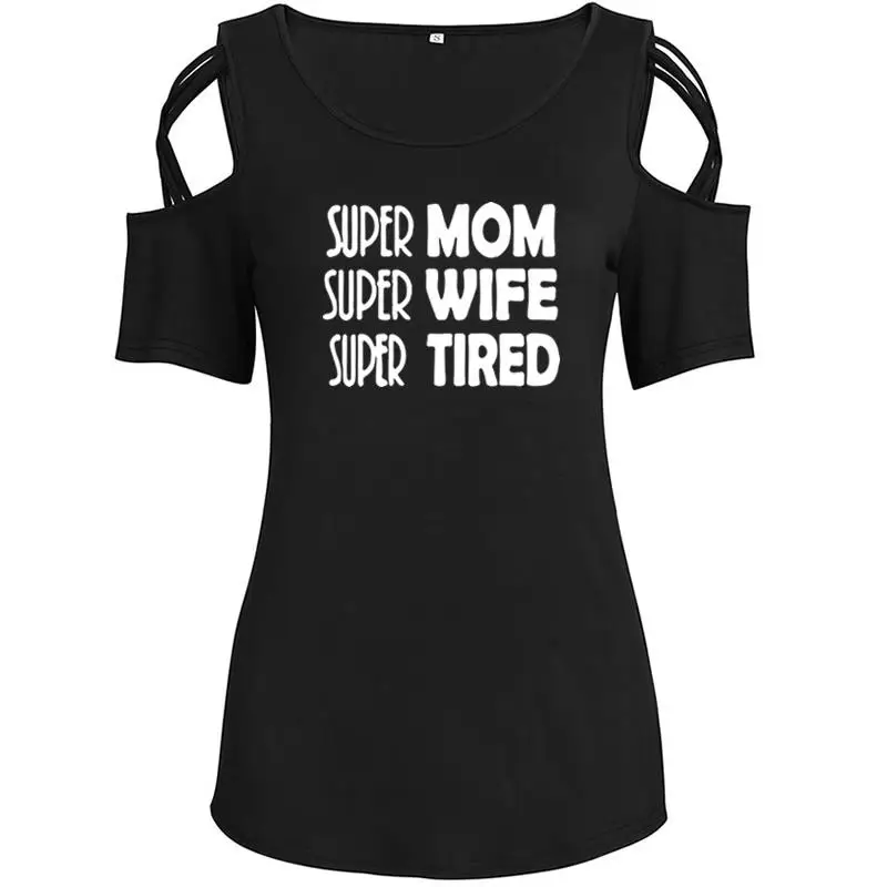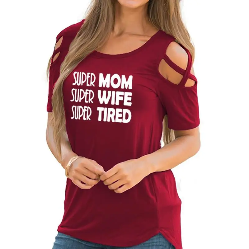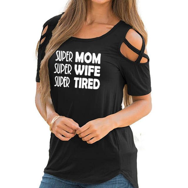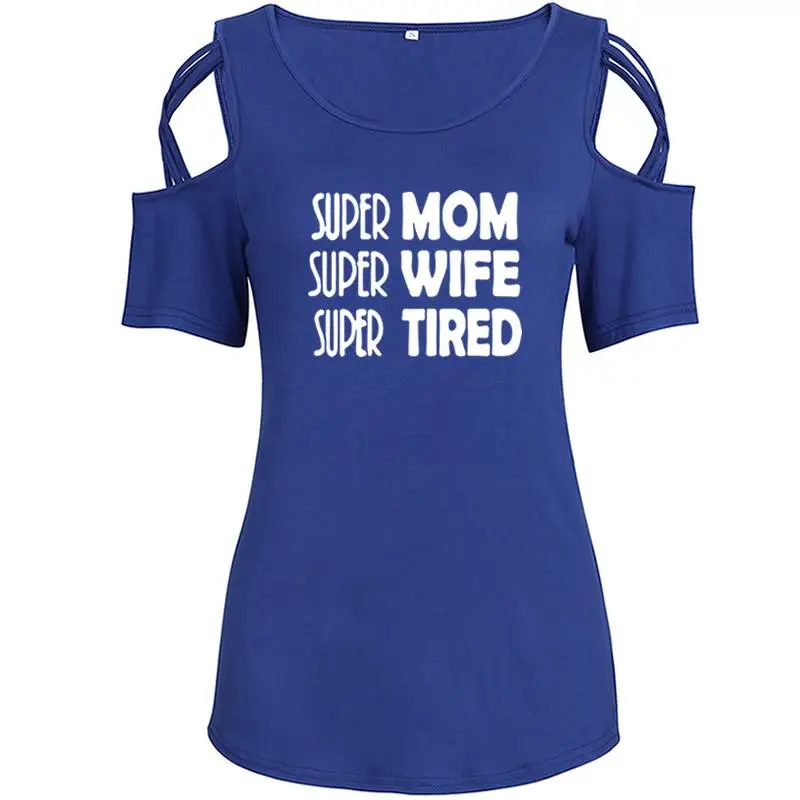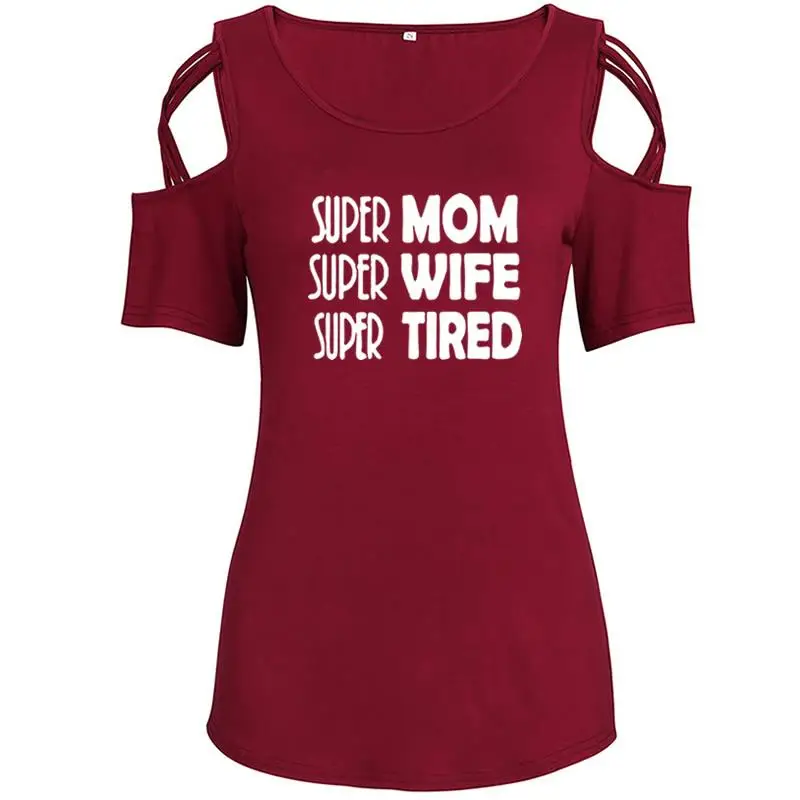 2018 New Fashion SUPER MOM WIFE TIRED Print Plus Size Harajuku T-Shirt Female Punk Summer Casual Cotton T Shirt for Woman