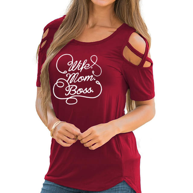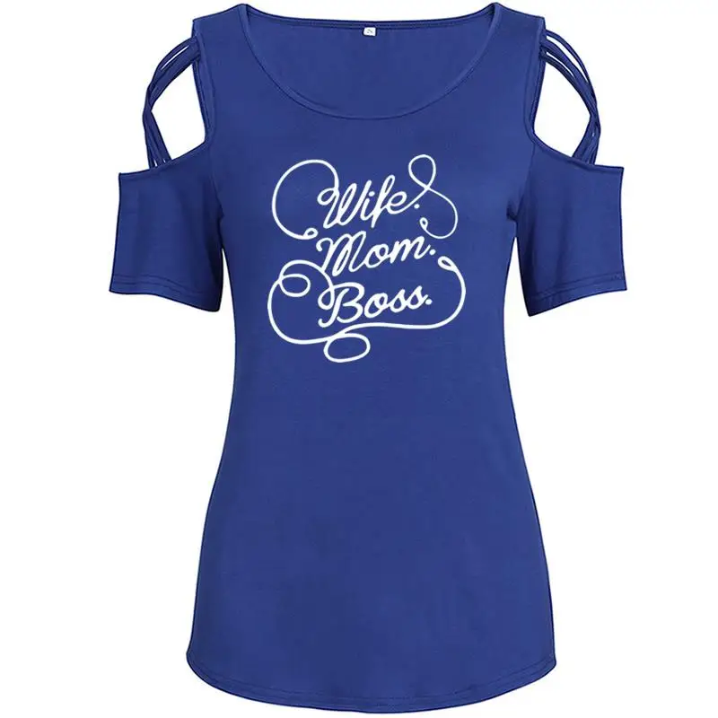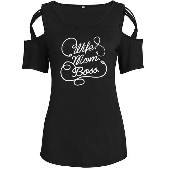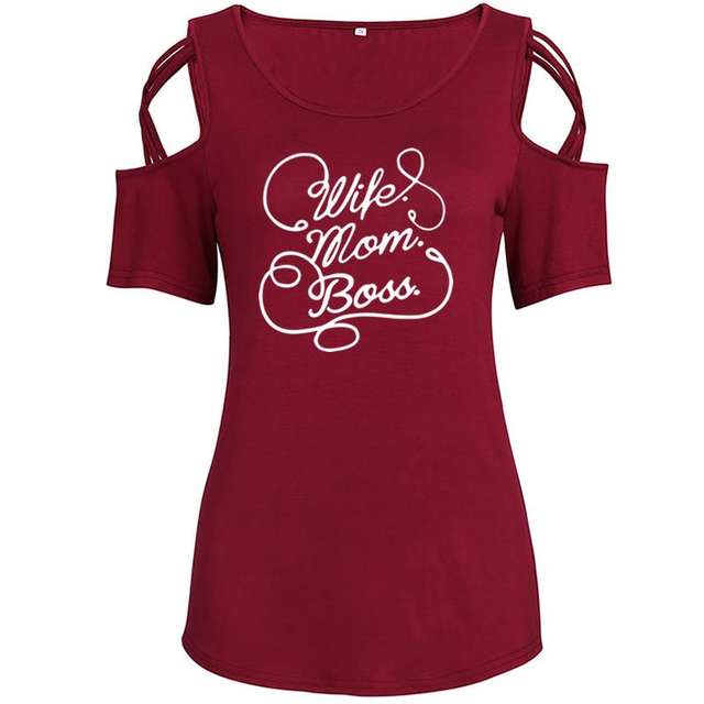 2018 New Fashion Wife Mom Boss Print Plus Size T-Shirt Women Tops Funny Kawaii Casual Off Shoulder Shirts Femme