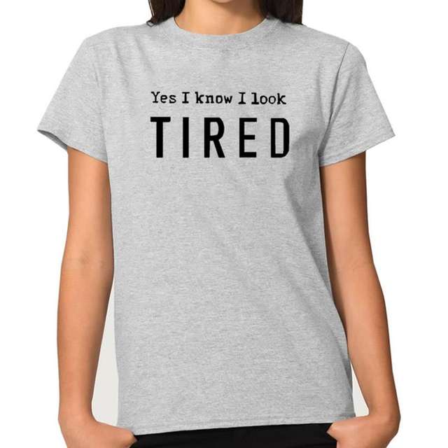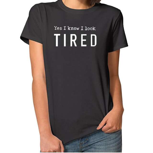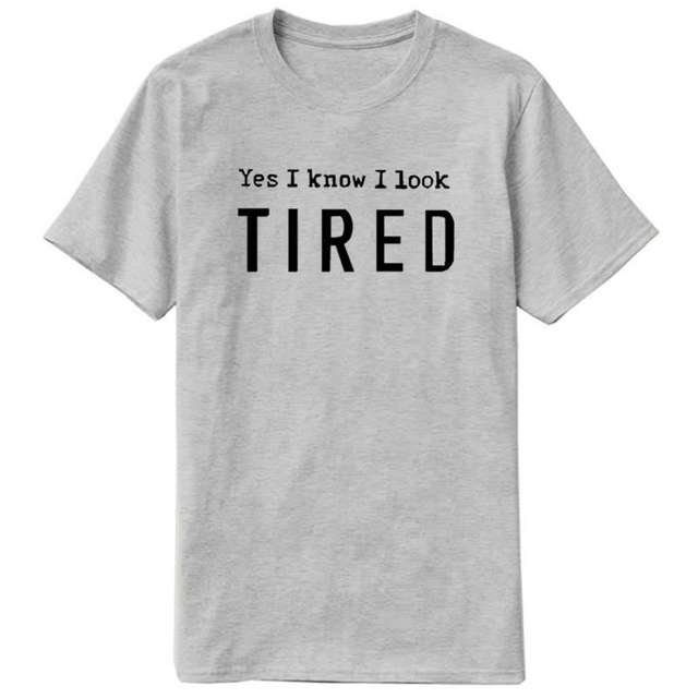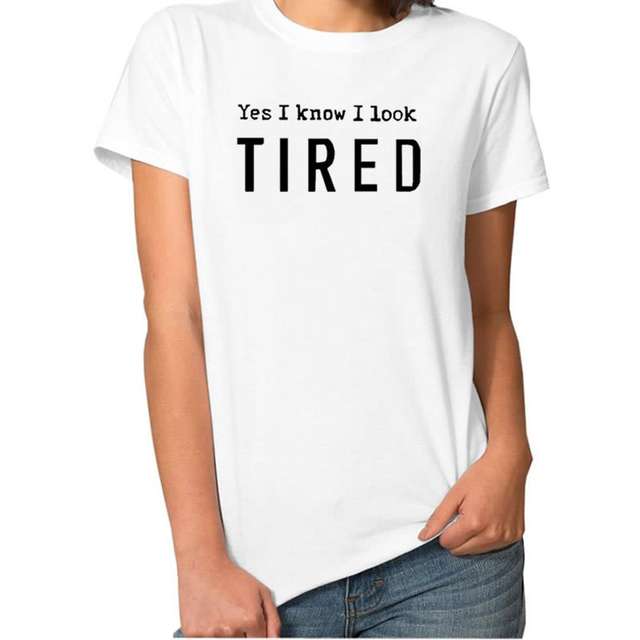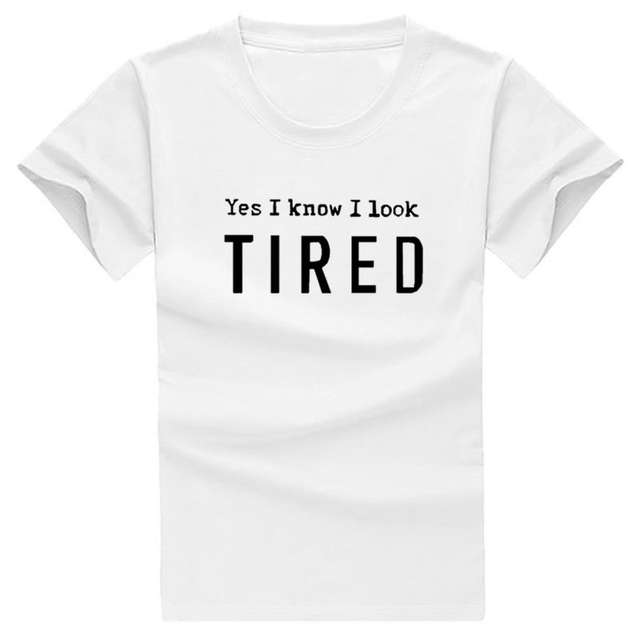2018 New Fashion Yes I Know I Look TIRED Print Plus Size Tops T-Shirt Women Funny Cute Female Shirts Korean Christmas Gift