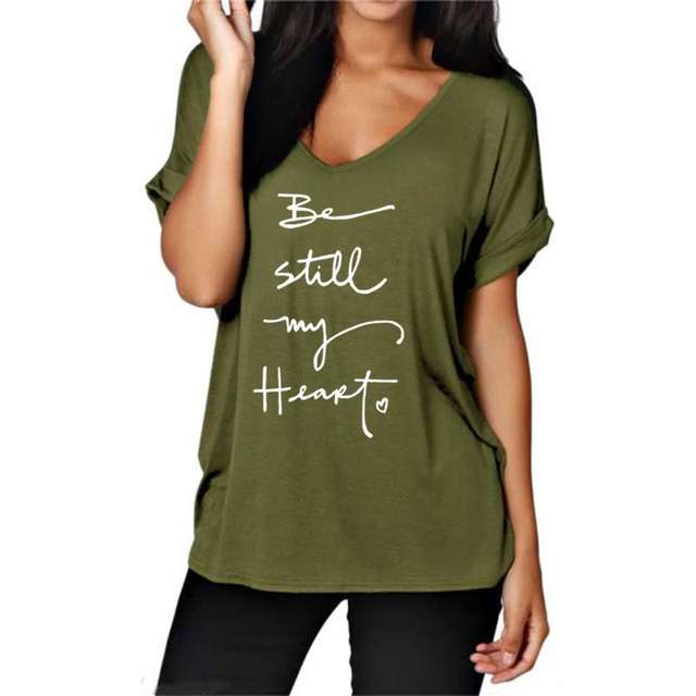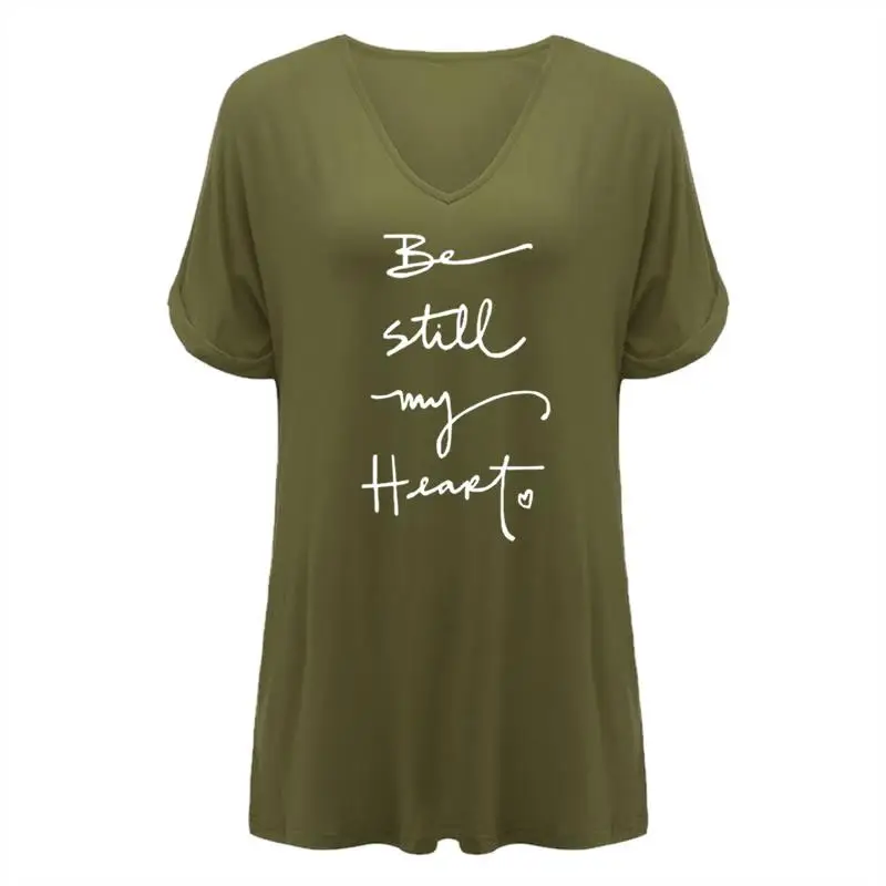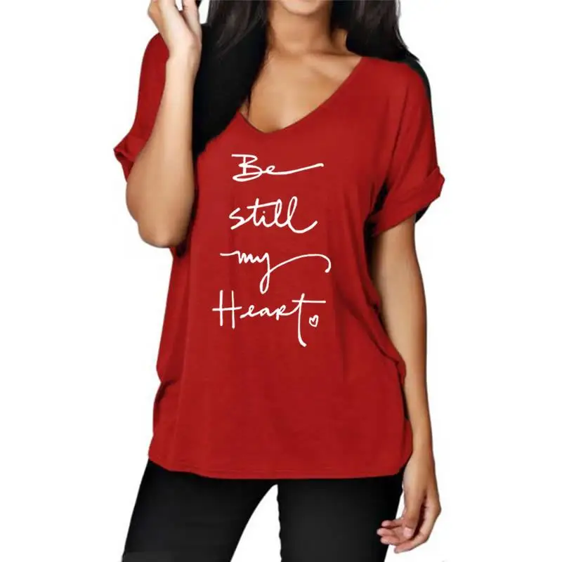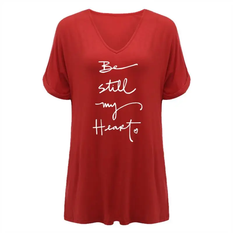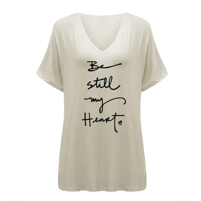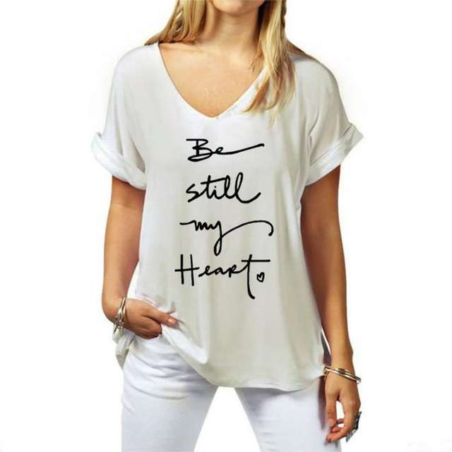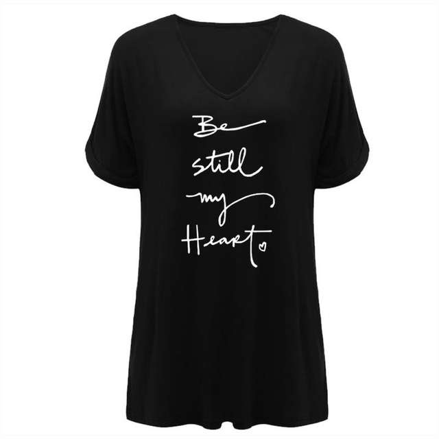 2018 Summer Women New T-Shirt European American Casual Fashion New Fashion Be Stiee My Heart Print Top Harajuku Female Plus Size