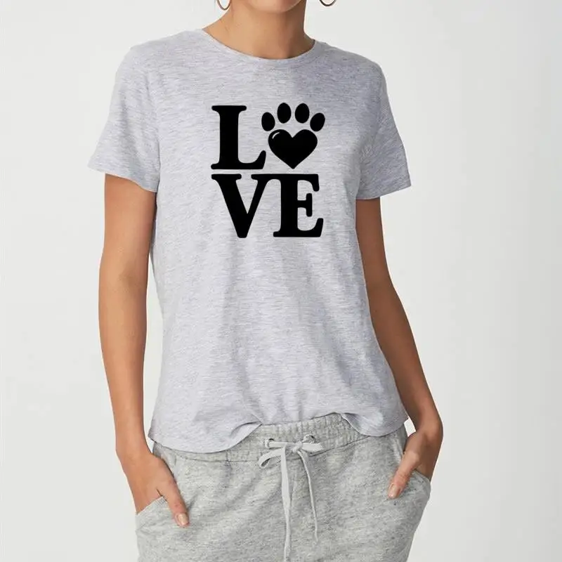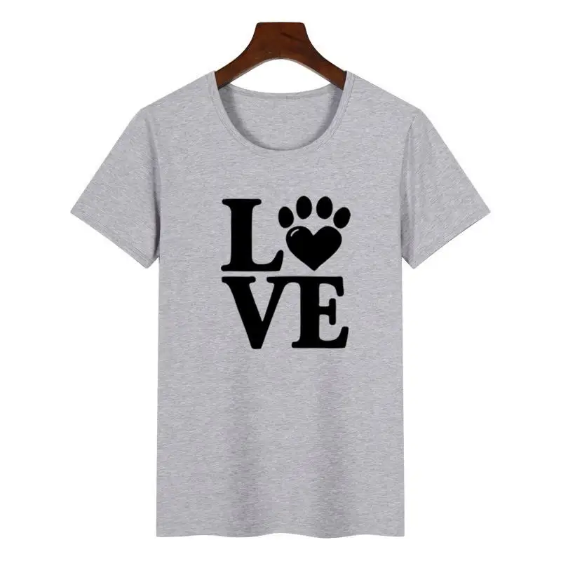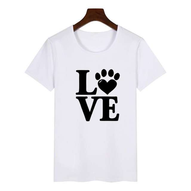 2018 Summer Women’s New Fashion T-shirt Love Dog Claw Print Top T-Shirt Female Harajuku Female Plus Size T-shirt
