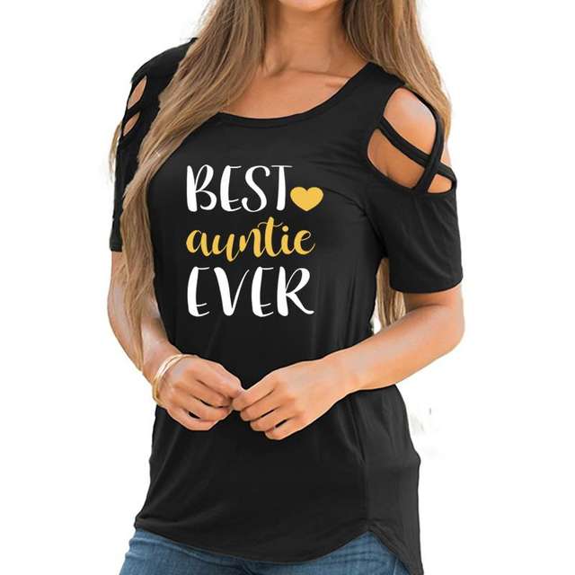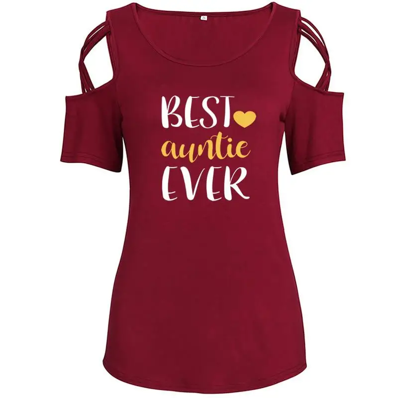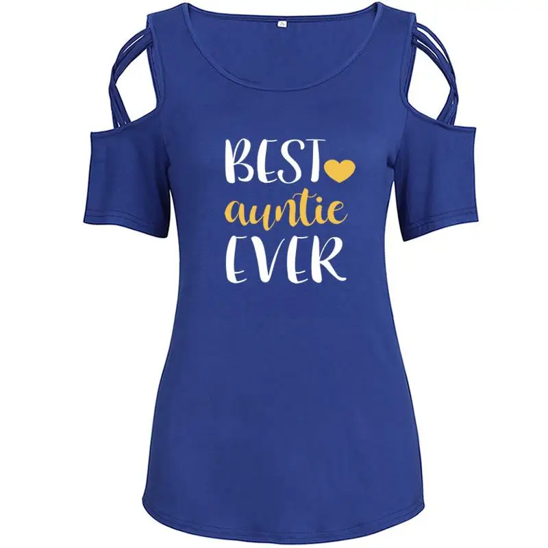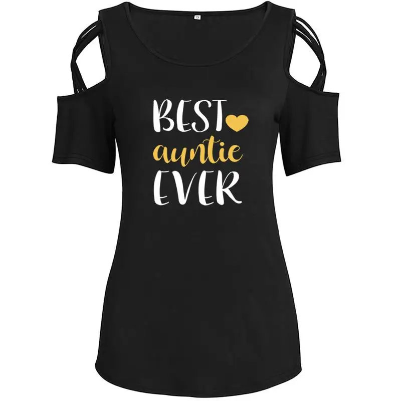 2018 Summer Women’s New T-Shirt Fashion Auntie Ever Print Plus Large Size Top Female Off Shoulder T-shirt