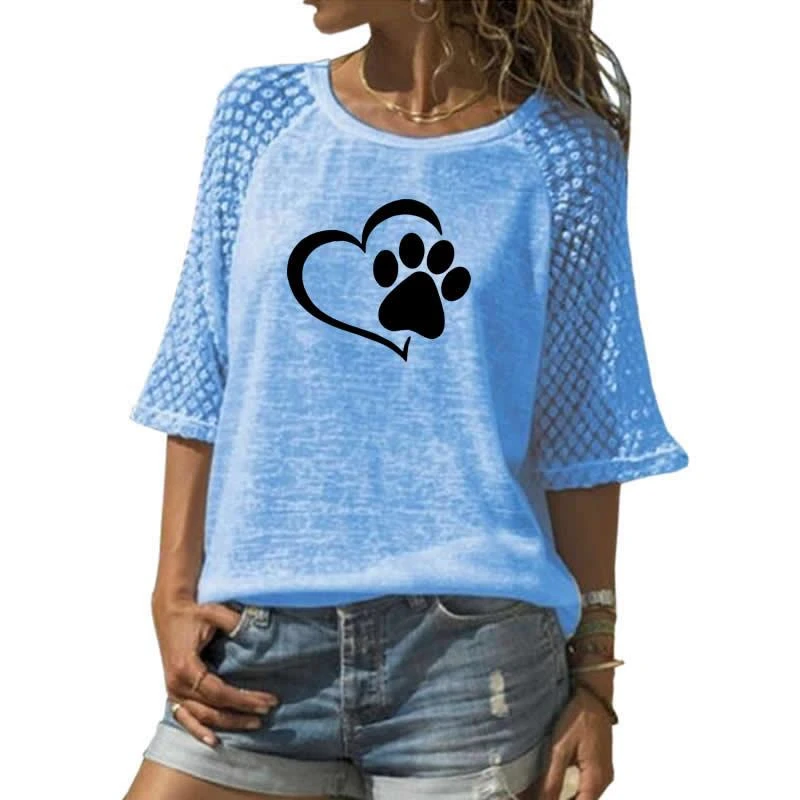 2019 Fashion Tshirt For Women DOG PAW Animal Print Lace Crew Neck T-Shirt Women Harajuku Punk Top Femme Tumblr Cropped