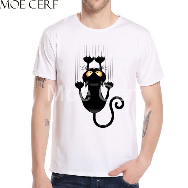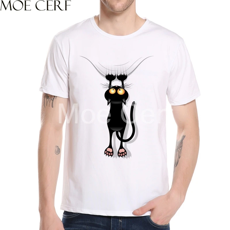 2019 Men’s Fashion 3D Black Cat Men T-shirt Novelty Black Cat Falling Down Pattern T Shirt Hipster Printed Brand Tees L11-47