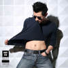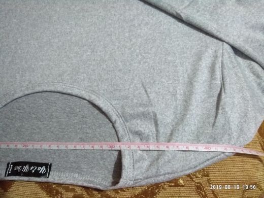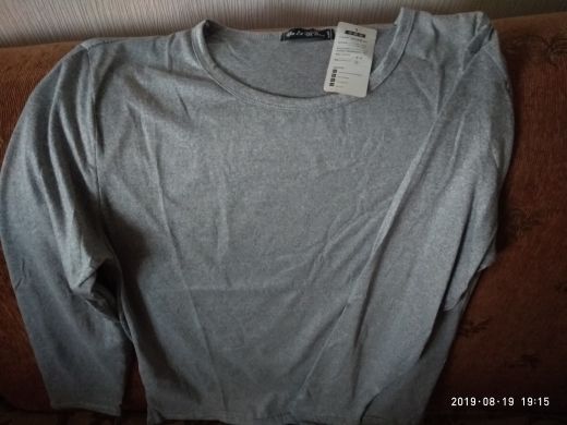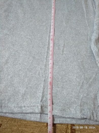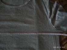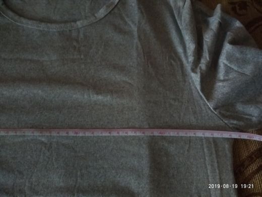 The fabric is very thin, the composition feels more synthetics, slightly elastic. The size approached 48-50 rus. The lower edge is uneven. Size t-shirt 2xl: shoulder 43, chest 48,5, length 66,5, sleeve 62 cm.