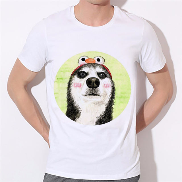 2019 New Fashion Casual t shirt dog Top Tees Arrival Men’s Short Sleeve O-Neck T-Shirt Huskies Printed T shirt Men t shirt 21-7#
