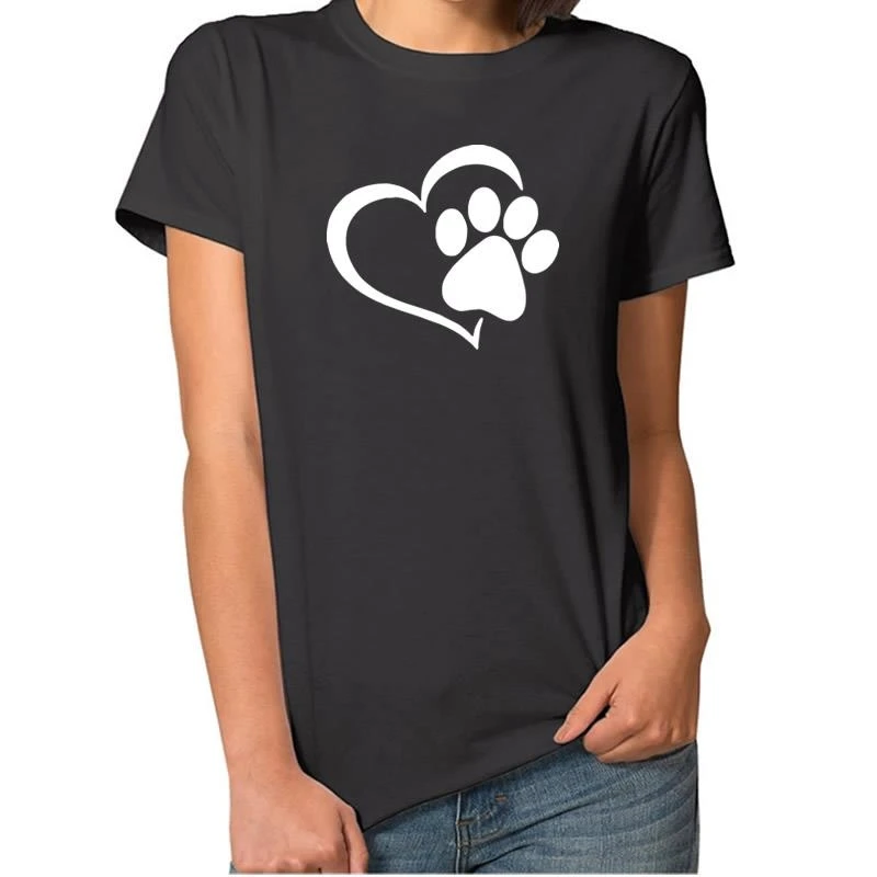 2019 New Fashion Cute Dog Paw Print Shirt Women T-Shirt Top Tshirt Tumblr Kawaii Femme Summer Dog Lover’s Gift High Quality