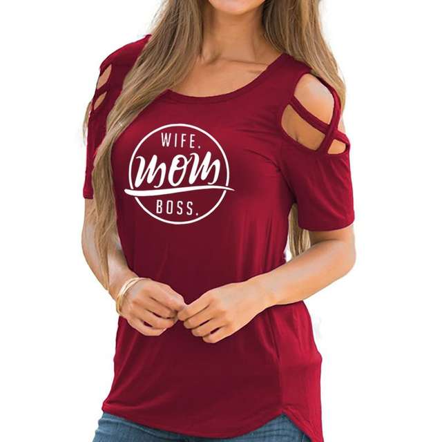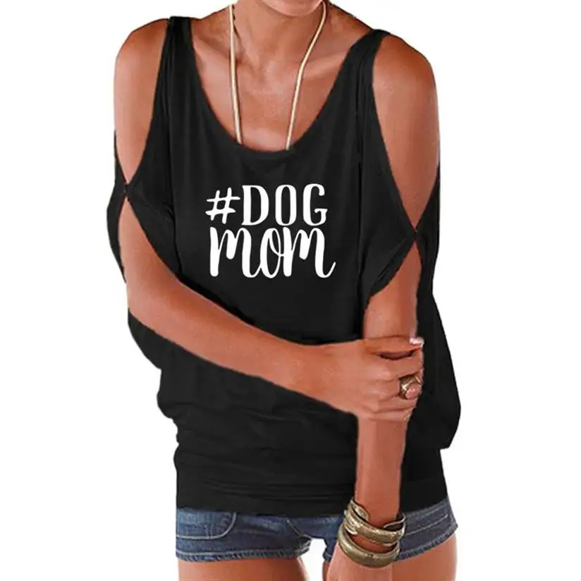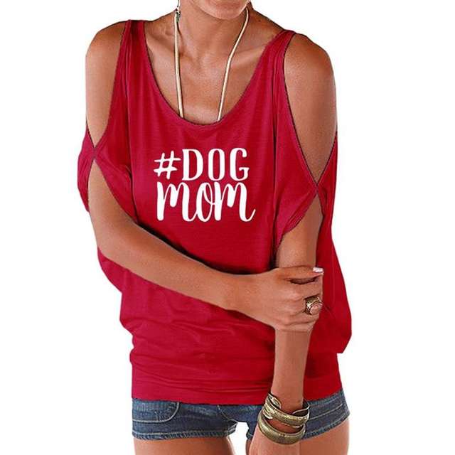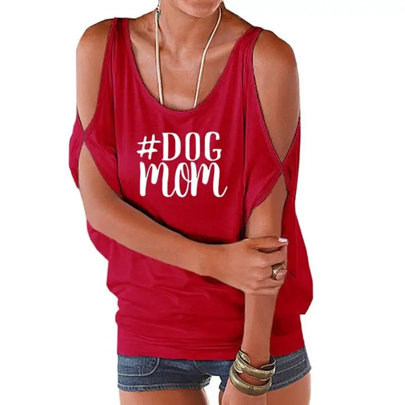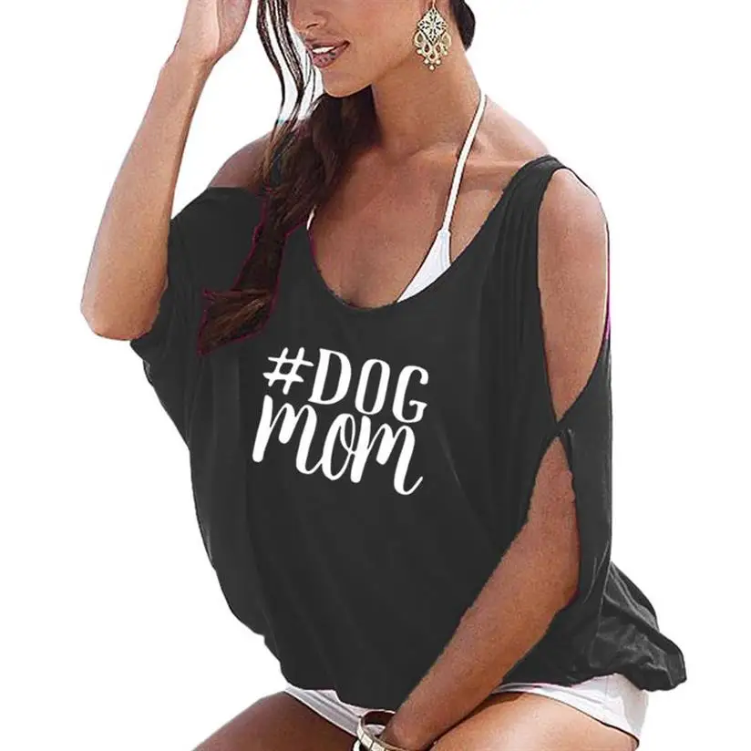 2019 New Fashion Dog Mom Letters Print T-Shirt for Women Off The Shoulder Bat Sleeve T-Shirt Female Tshirt Women Tops Streetwear