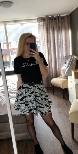 Item is as described and pictured above. It fits perfectly however is slightly see through. I recommend wearing white/nude underwear with this top.