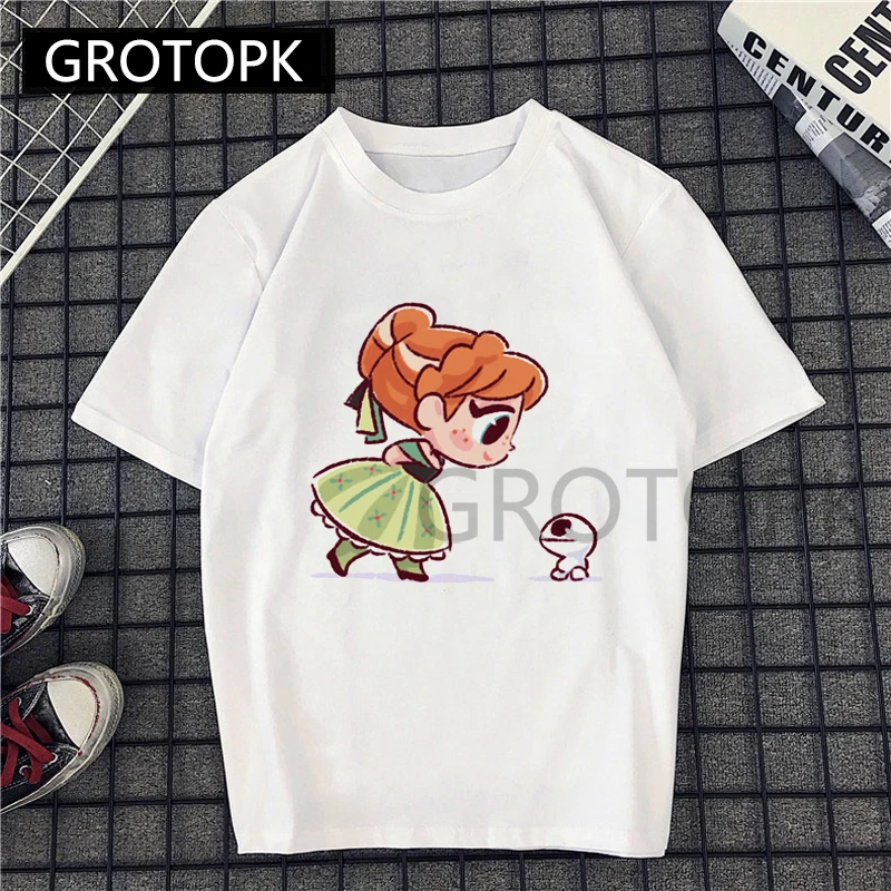 2019 New Kawaii Anna and Elfin Prints T Shirt Princess Womens Clothing Female Casual Harajuku Women Tee Shirt Femme Vogue