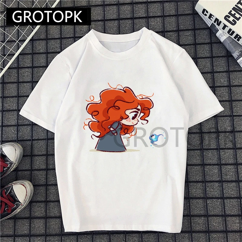 2019 New Kawaii Merida and Elfin Prints T Shirt Princess Womens Clothing Female Casual Harajuku Women Tee Shirt Femme Vogue