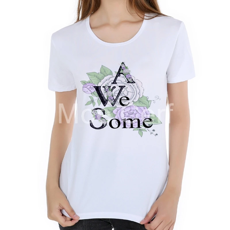 2019 Newest Flowers Print t shirt Women Casual Tee Shirt Slim Female T shirt Harajuku women Tees girl kawaii tops L18-64