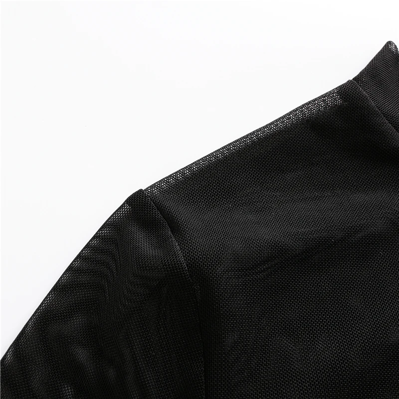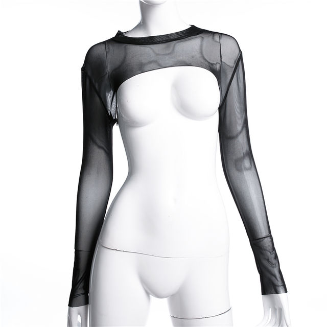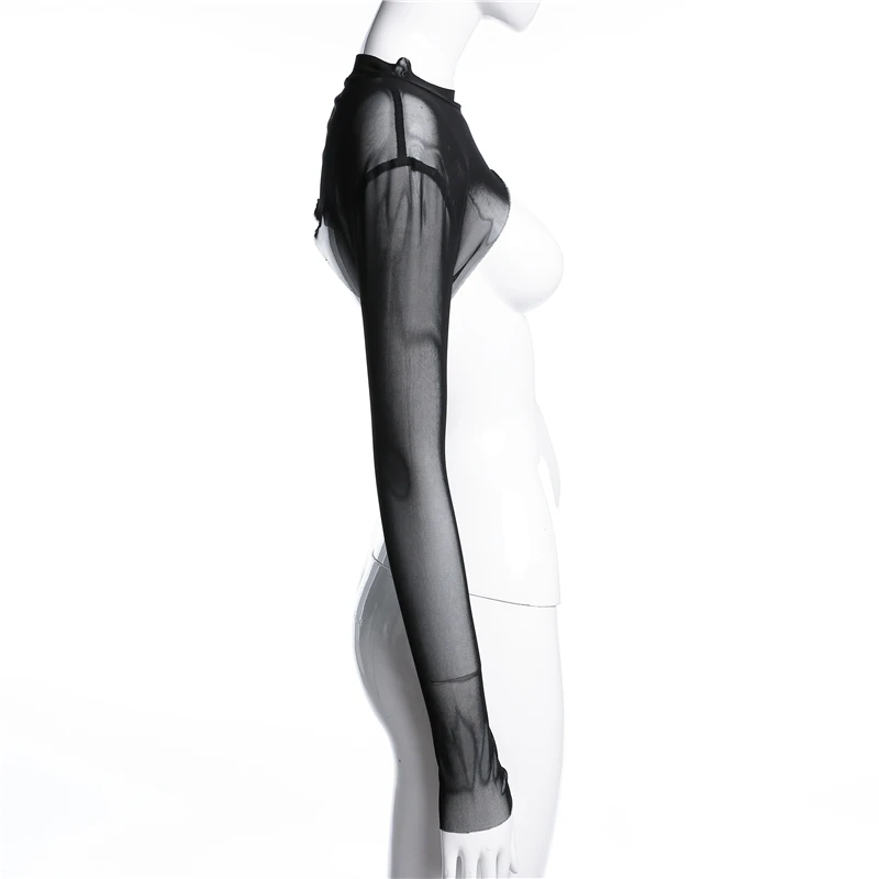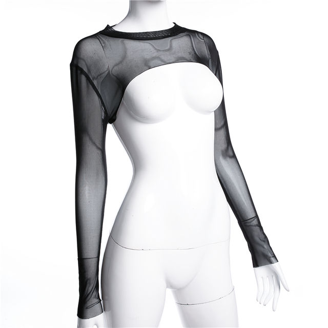 2019 Sexy Mesh Crop Solid O Neck Short Lace T Shirt Fashion Long Sleeve Sheer Short T-shirt Women 2019 Basic Tight Top Tees