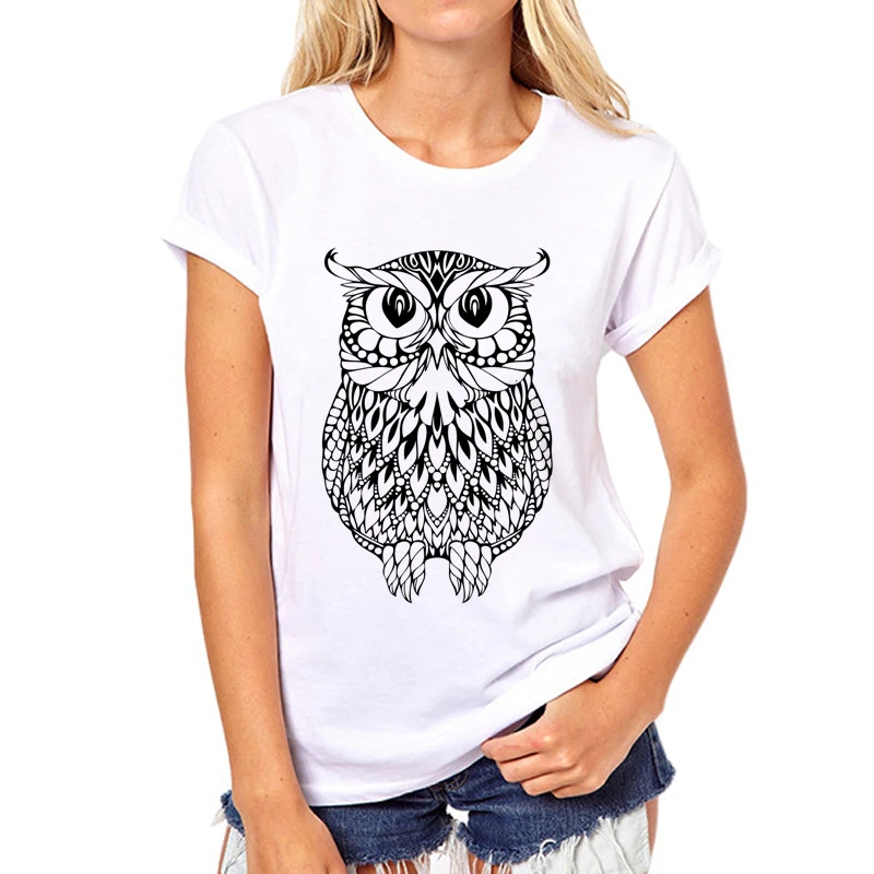 2019 summer fashion women High quality t-shirt Love Owl T shirt women Cartoon girl brand clothing 39W-15#