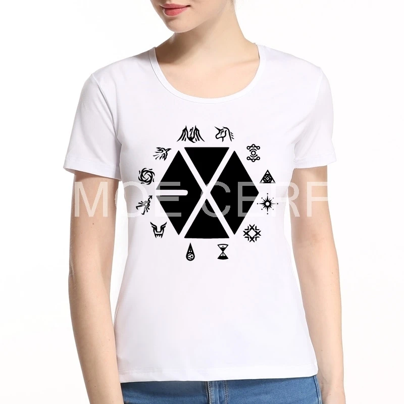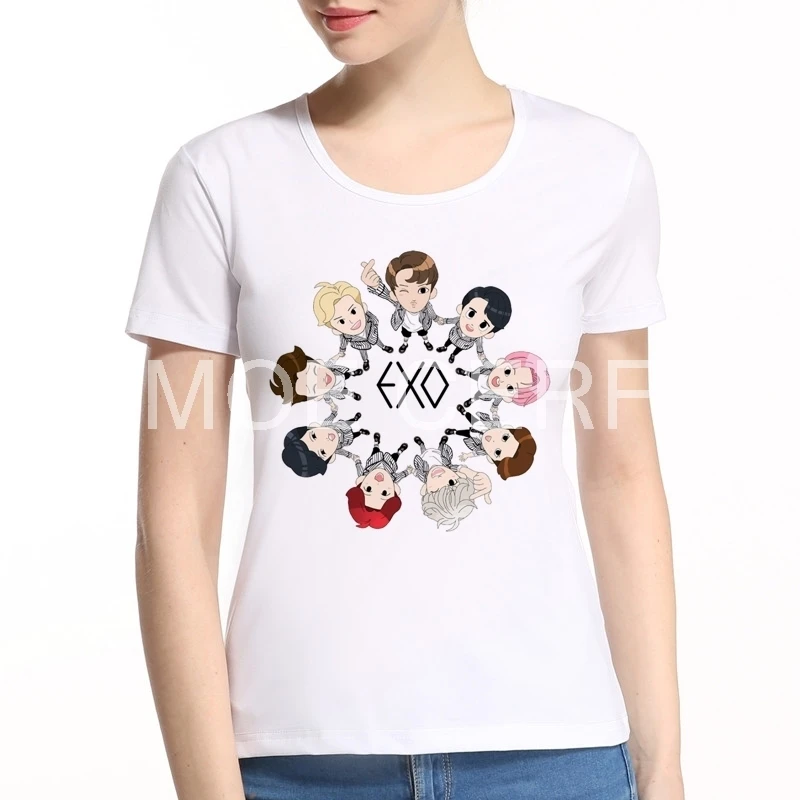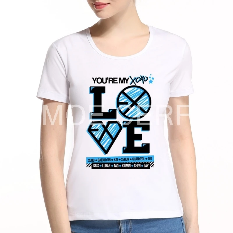 2019 Summer Kawaii Short Sleeve EXO t shirts Kpop Brand Clothing Fashion Letter Print Tops Paired t-shirts female T-shirt K2-6#