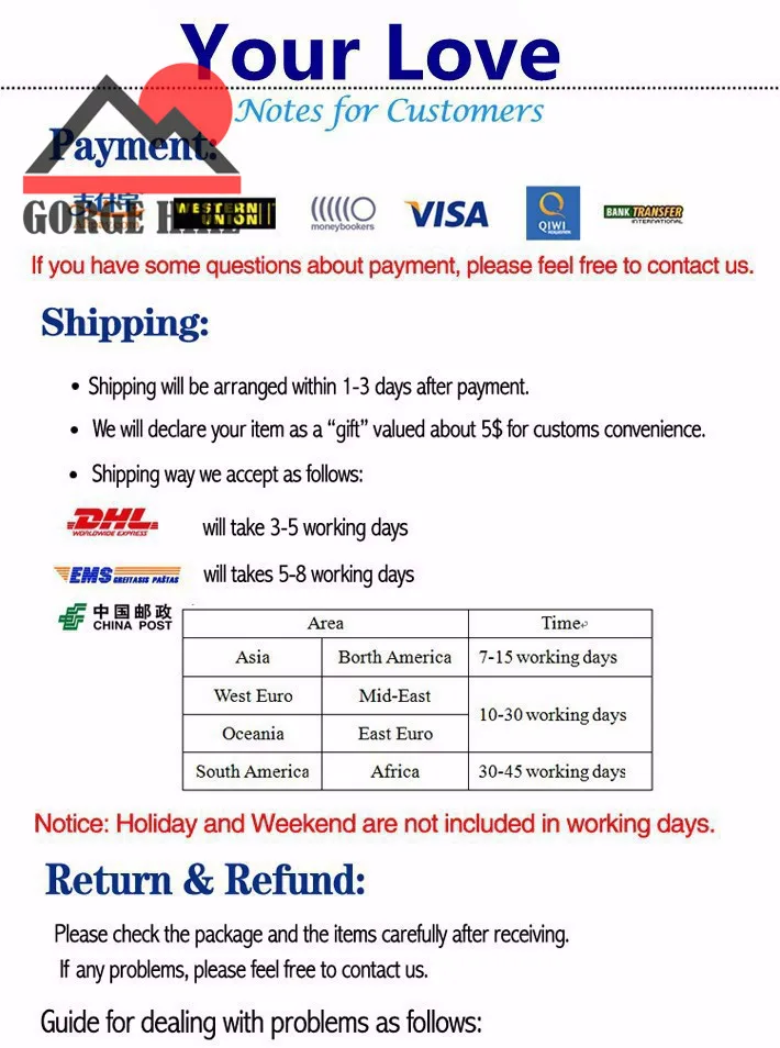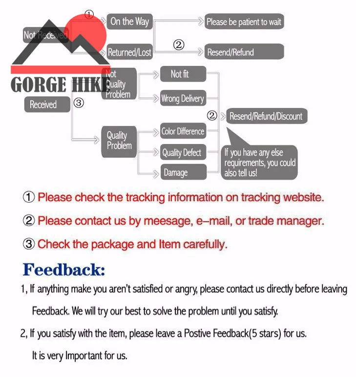 • If you did not receive the product within the guaranteed time( 45 days not including 2-5 day processing) you can request a refund or a reshipment.
