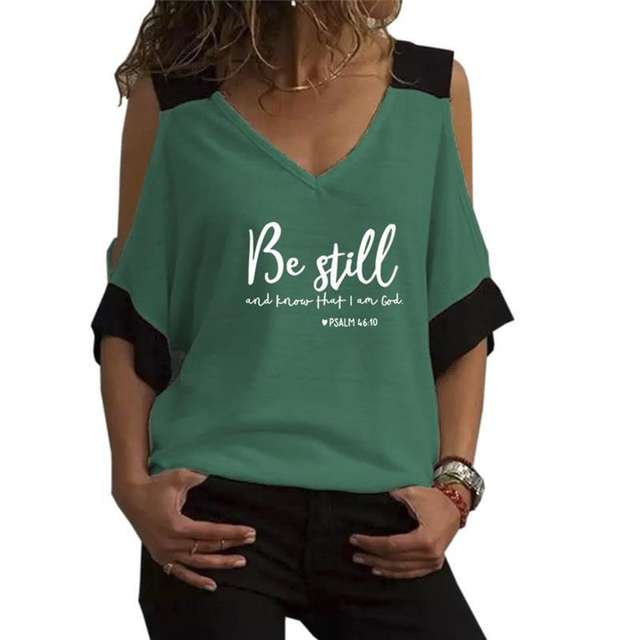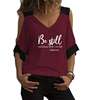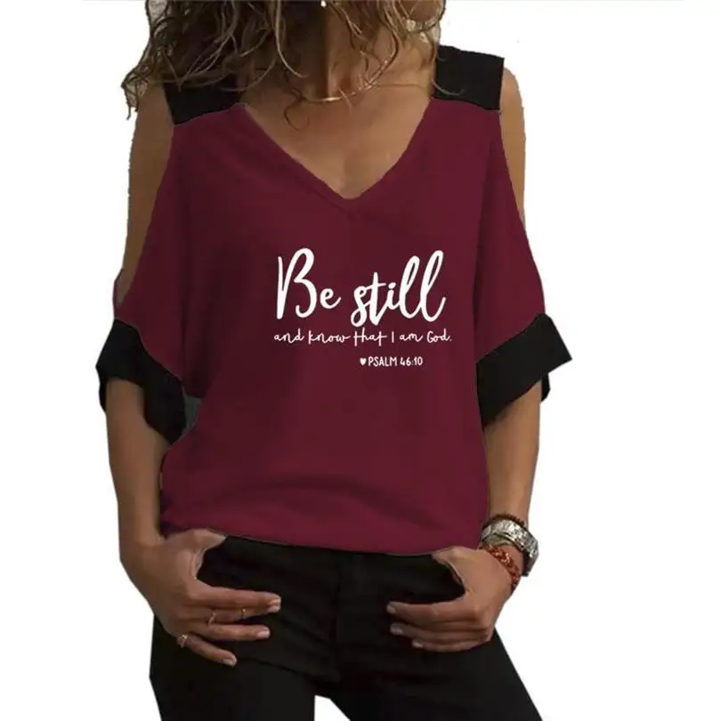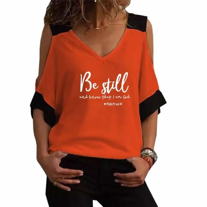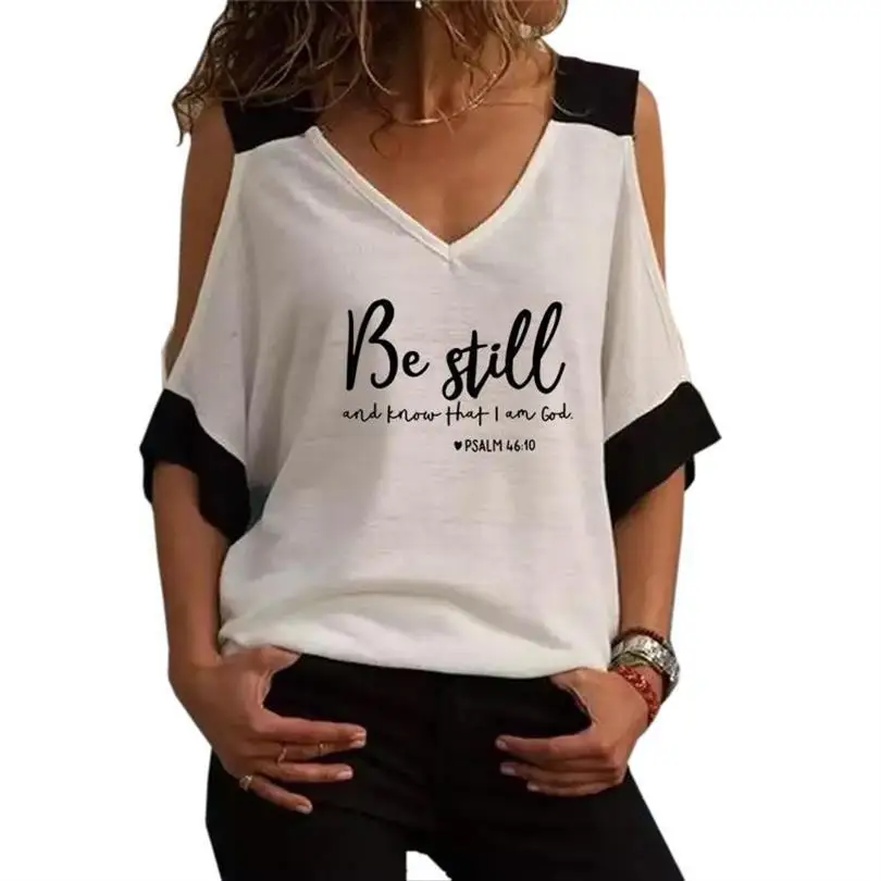 2020 Fashion T-Shirt For Women Be Still Letters Print Contrast Strapless V-Neck Tops Harajuku Plus Size Summer Femme Funny