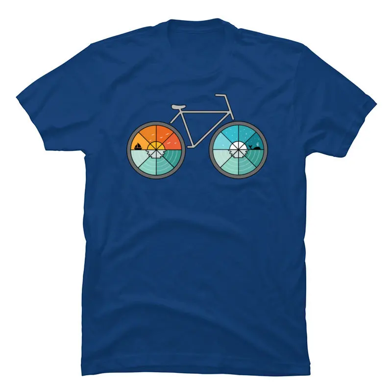 2020 New Coming Printed Fashion Tee Shirt Bicycle Landscape Geometry Cotton Fabric Tops Shirts for Men Black