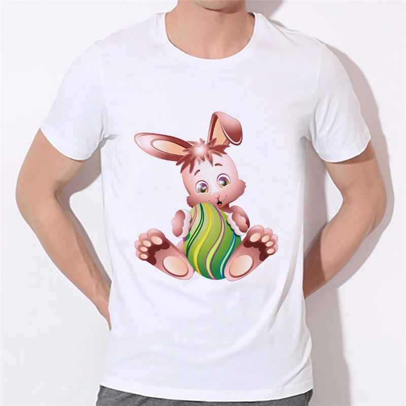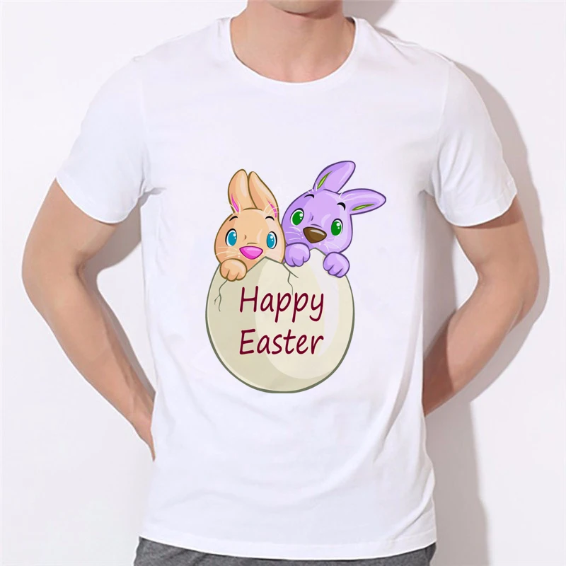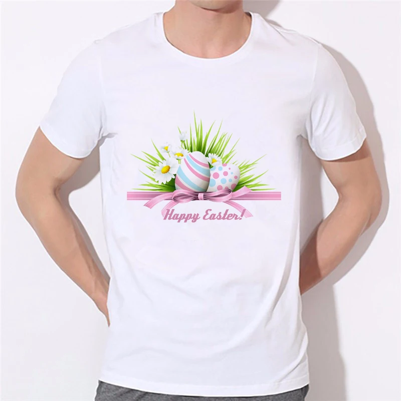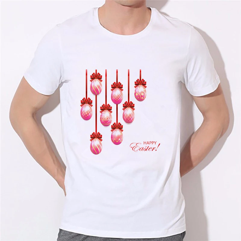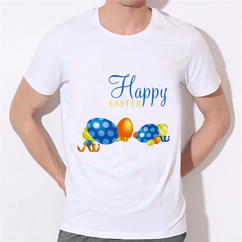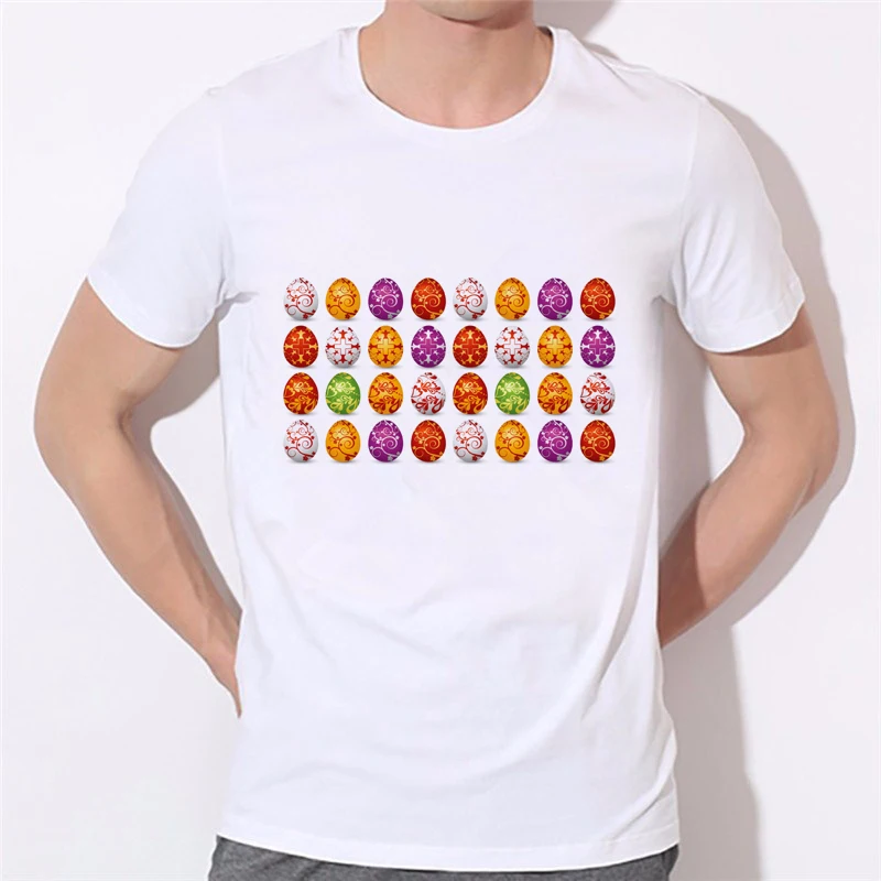 3D Happy Easter New Men’s White T-shirts Short Sleeve Color eggs Tshirt Man/women Brand Clothing 66N-14#