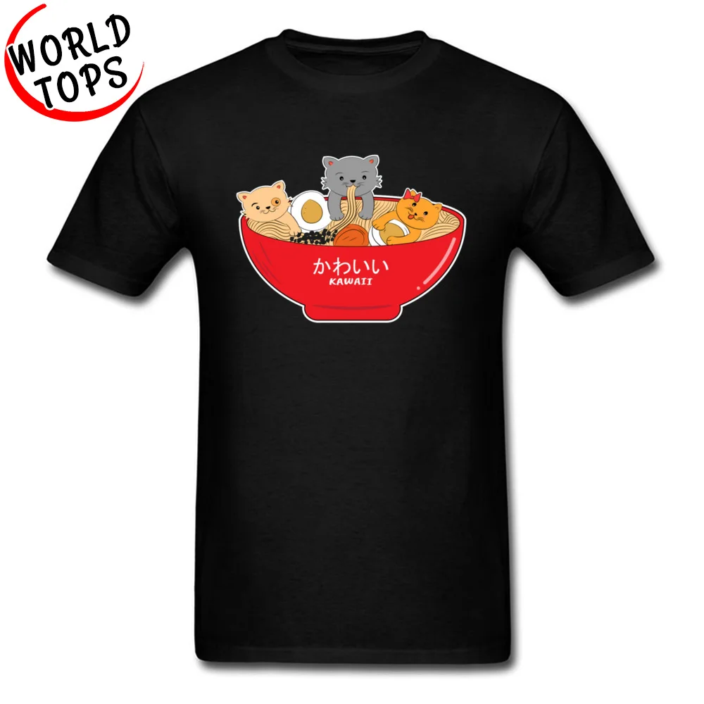 Adorable Cute Japanese Ramen Cats Kawaii Graphic Funny Tshirts Noodles Cat Group T Shirt Black High Quality Tees Free Shipping