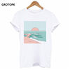 Aesthetic Views Print T-shirt for Women Short Sleeve 100%cotton Starry Sky Waves Vintage Tumblr Korean Clothing Tee Shirt Femme
