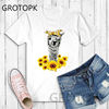 Aesthetics Sexy Flowers Alpaca Print Harajuku Tops Tees New Summer Sunflower Retro Kawaii Casual Sweet Lady Short-Sleeve T-Shirt