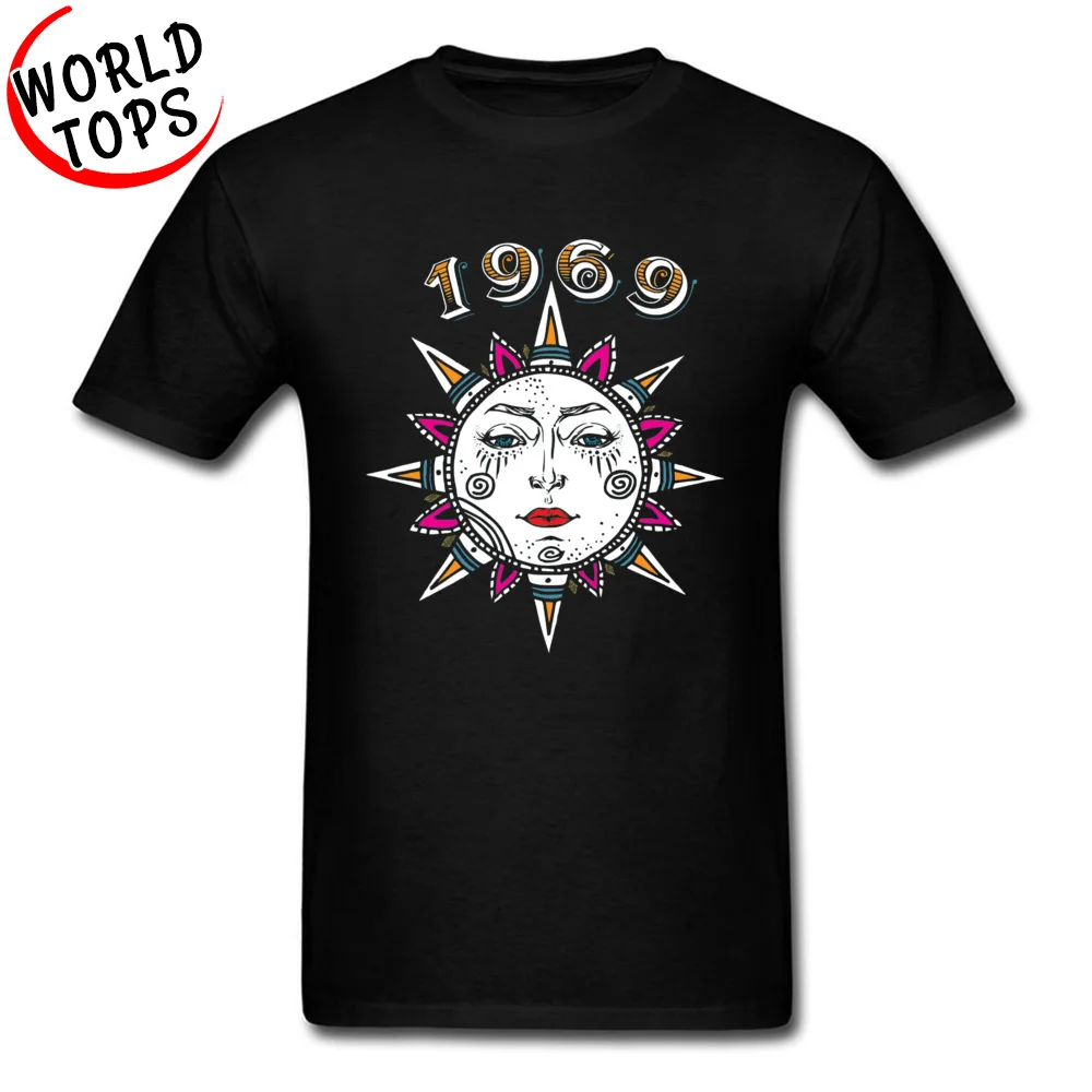 Art Design Sun Face 1969 Classic T Shirt Cute Graphic Summer Round Neck 100% Cotton Fitness Black T Shirt 3D Print Tee Shirt Men