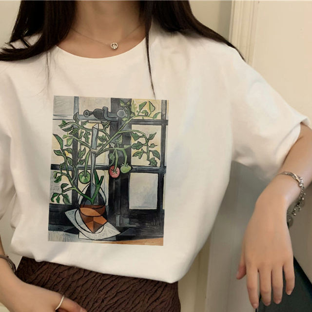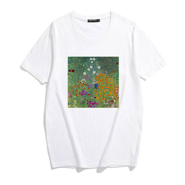 Art Retro Gustav Klimt Oil Painting Harajuku New Women Korean Sweet Lady Aesthetics Pattern Flowers plants Print casual t-shirt