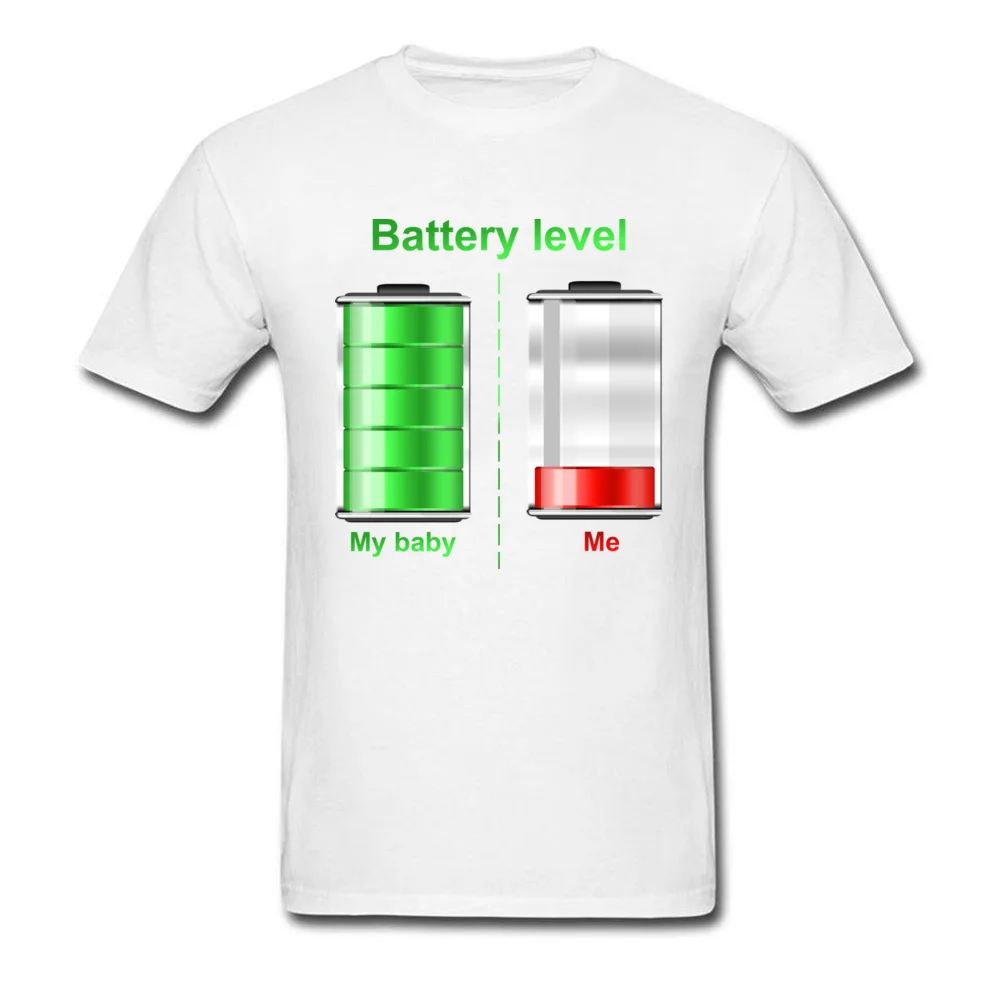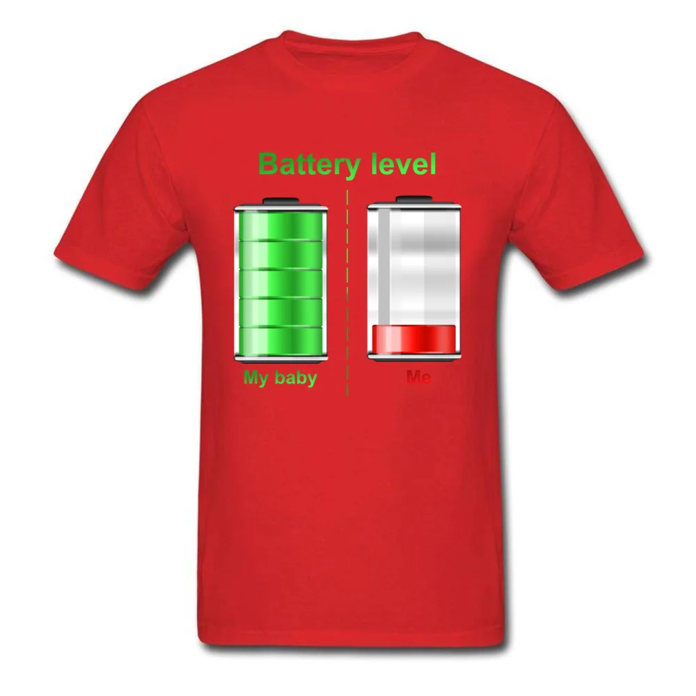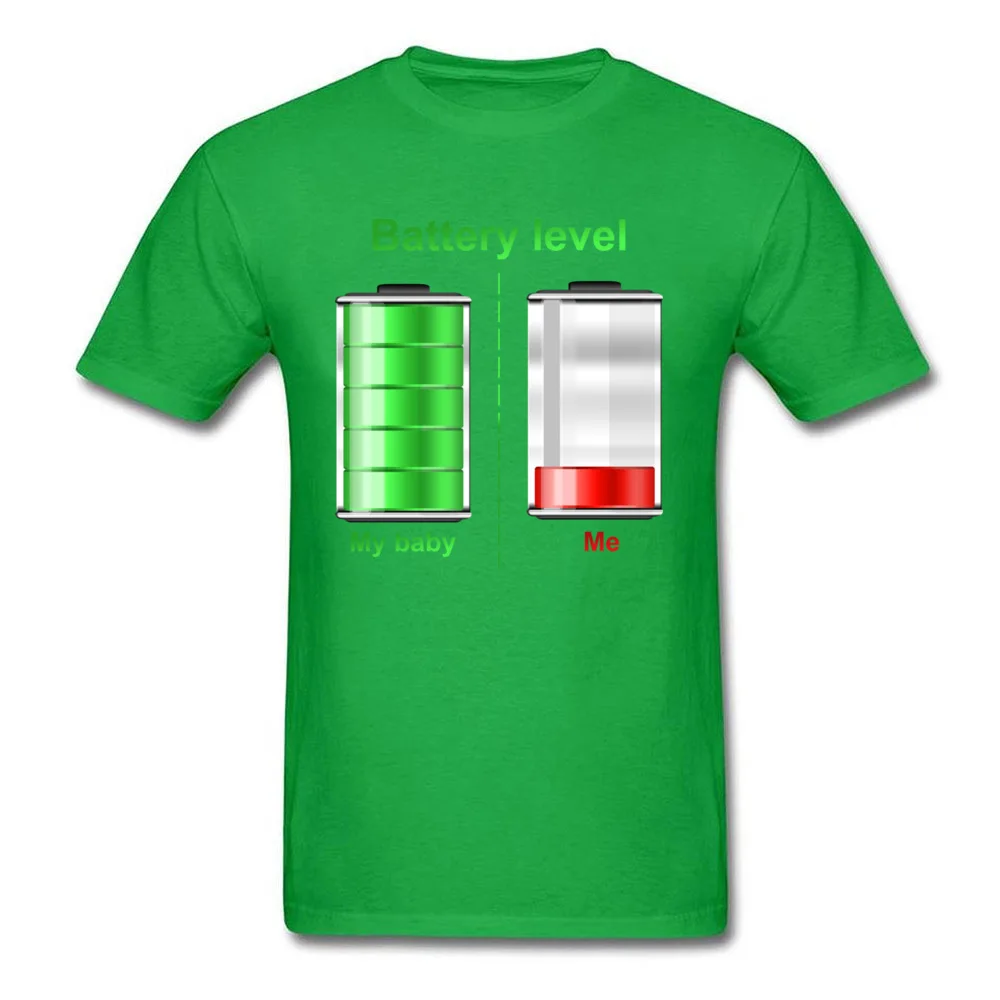 Battery Level My Baby Tshirt Electrical Cell Father Day 100% Cotton Men T Shirt Red Green Battery Show Print T-Shirt Hipster Tee