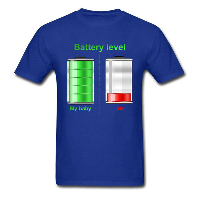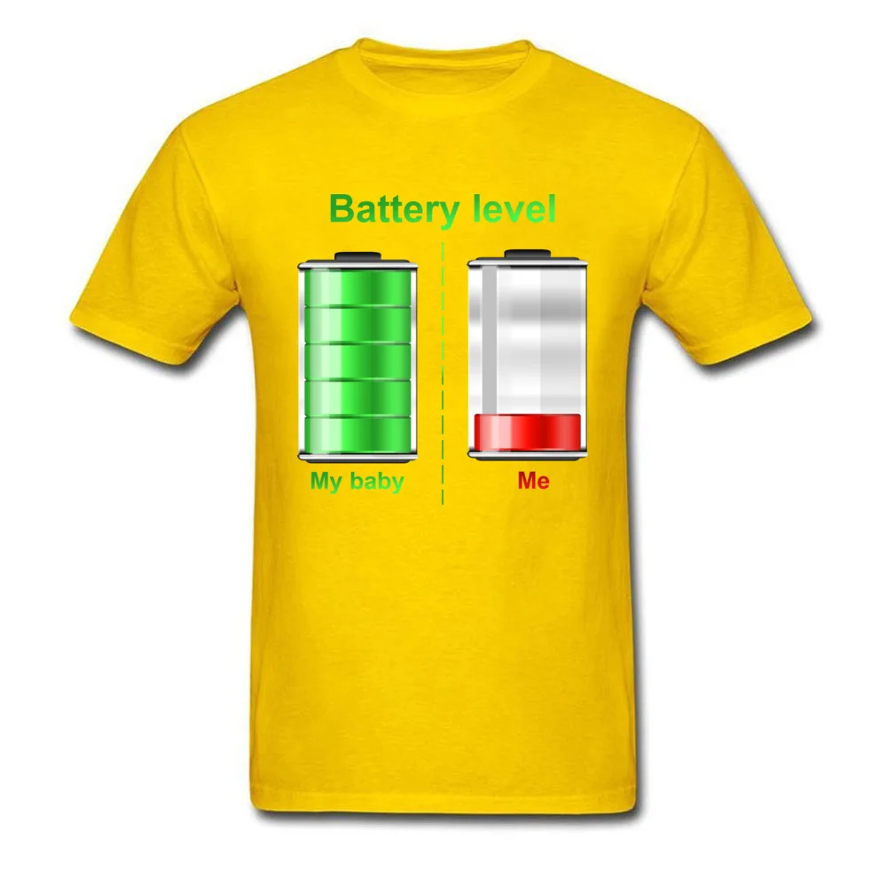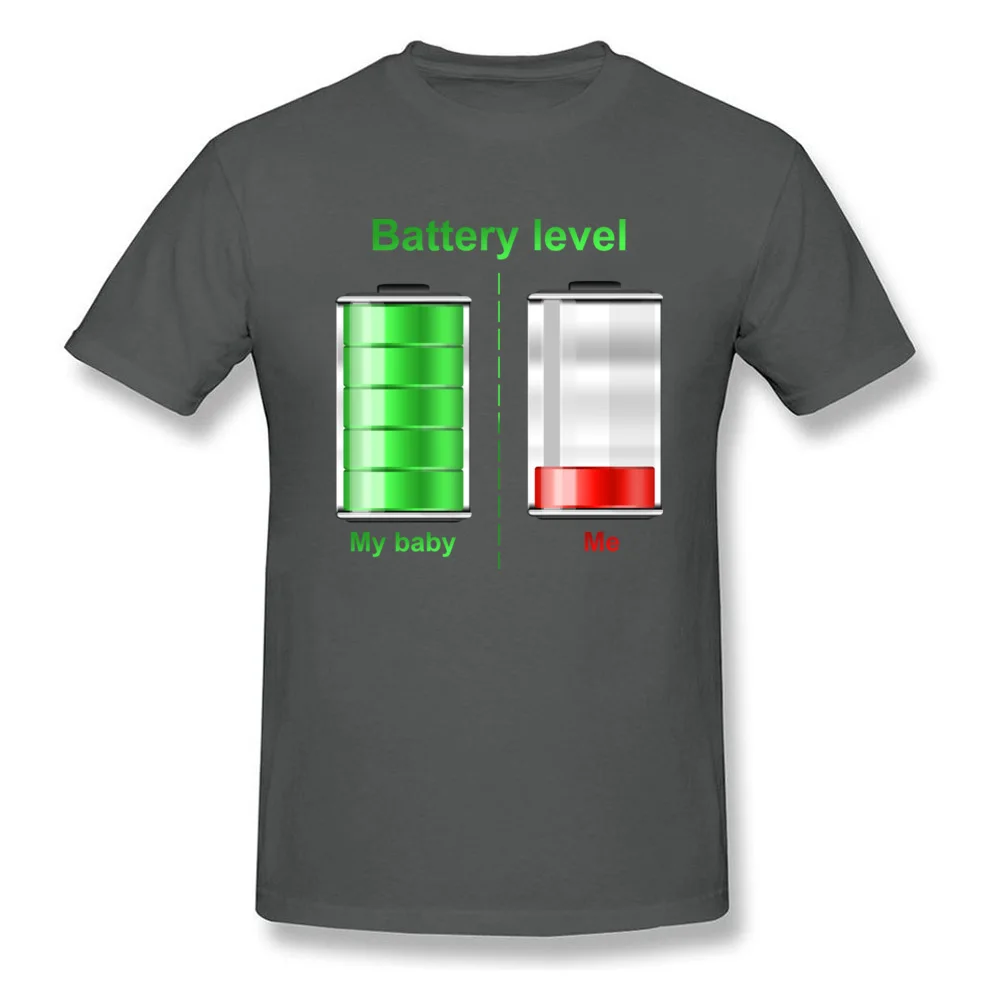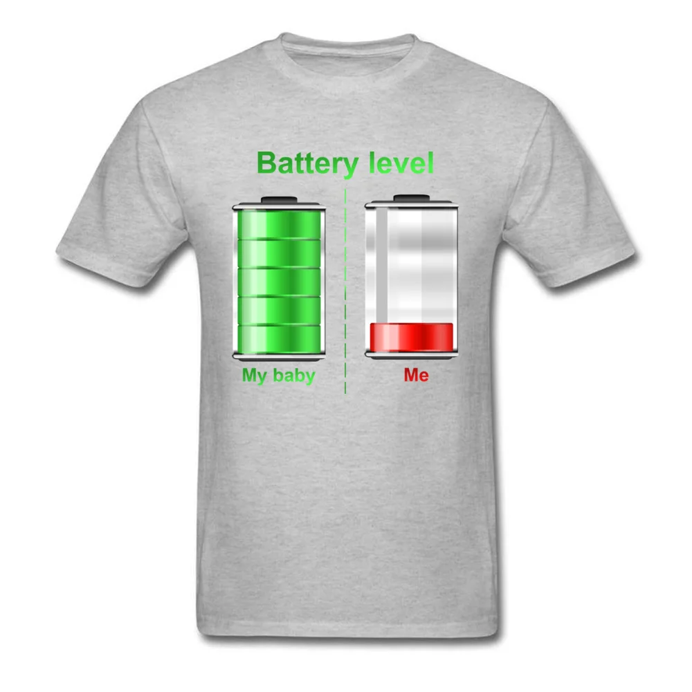 Battery Level My Baby Tshirt Electrical Cell Father Day 100% Cotton Men T Shirt Red Green Battery Show Print T-Shirt Hipster Tee