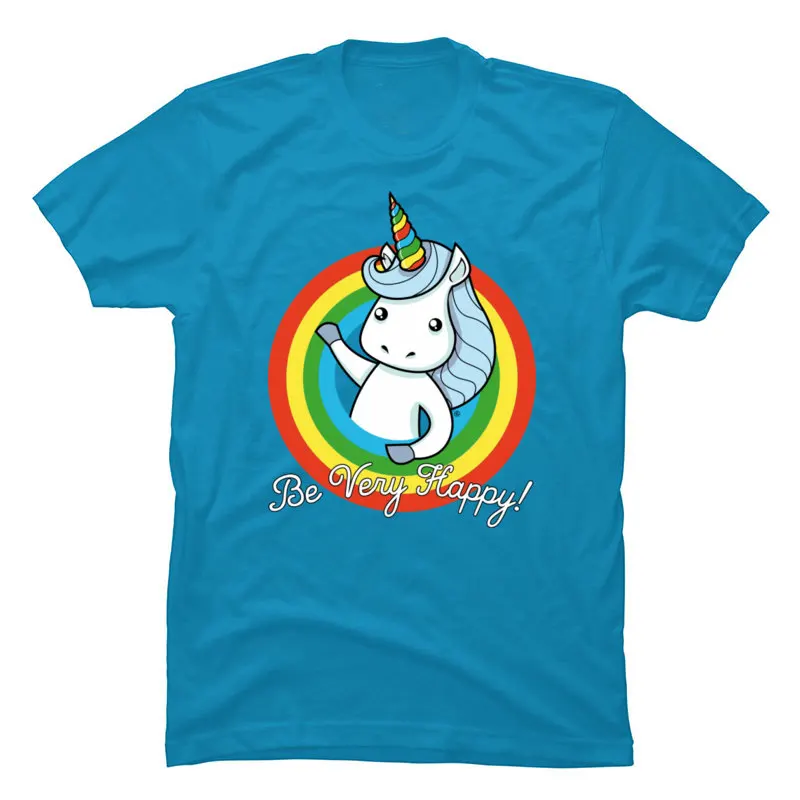 Be Very Happy Rainbow Unicorn Funny Top T-shirts Leisure 2020 Newest Crewneck Man T Shirts Outkast Juice Wrld
