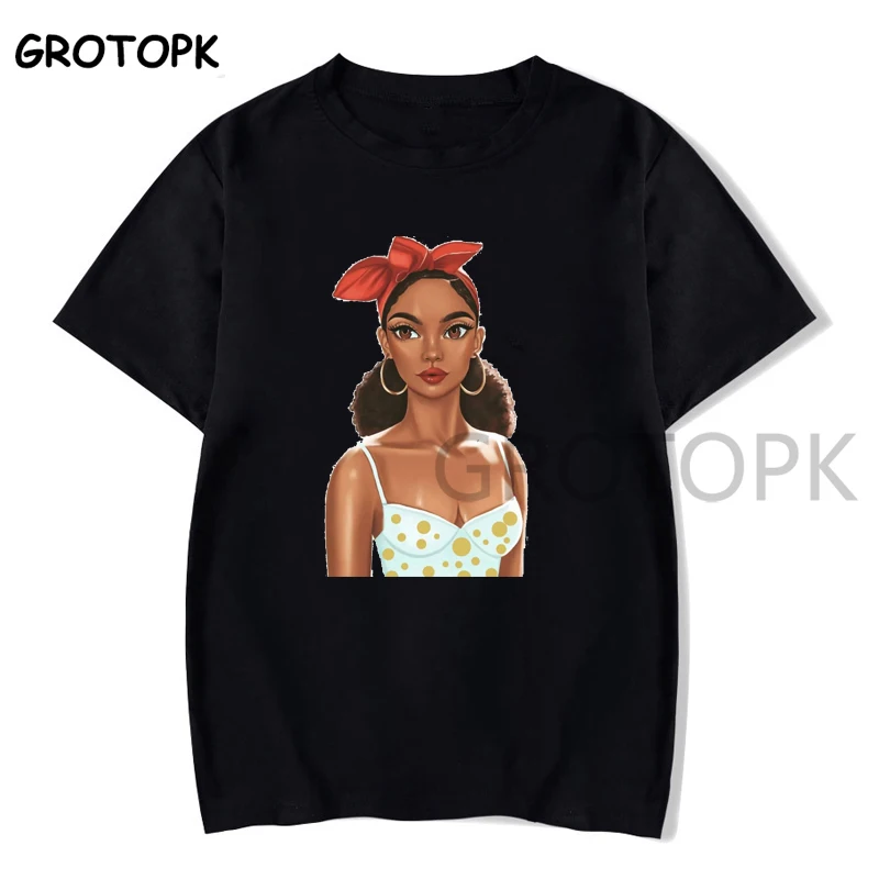 Beautiful Black Girl Bohe Print Female T-shirt Summer Cotton Vintage Black Vogue T Shirt Tee Shirt Femme Hip Hop Top Streetwear