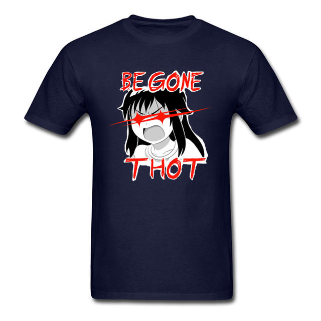 BEGONE THOT Anime Japanese Manga T-Shirt for Men Zero Two Waifu Ahegao Love Day Crew Neck Cotton Short Sleeve T-Shirt Blue