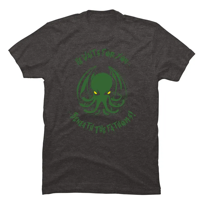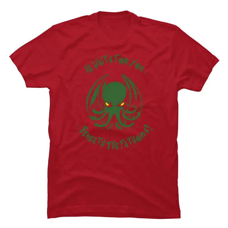 Beneath The Fathoms Call Of Cthulhu Cool T-Shirts All Cotton Men Short Sleeve Tops T Shirt Group Free Shipping