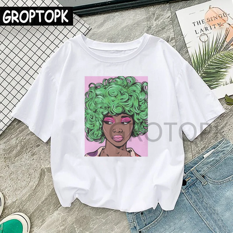 Black Magic Girl Protrait T-shirts for Women Short Sleeve Cotton Summer Top 2019 New Punk Hip Hop Harajuku Top Tee Shirt Femme