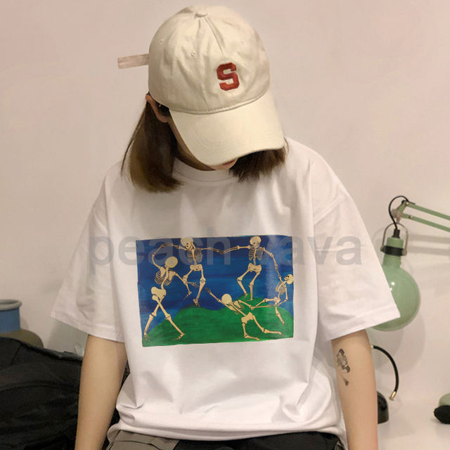 Bones head personality cute summer female T-shirt Harajuku casual funny loose O-Neck short-sleeve cartoon print women’s clothing