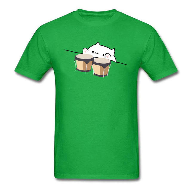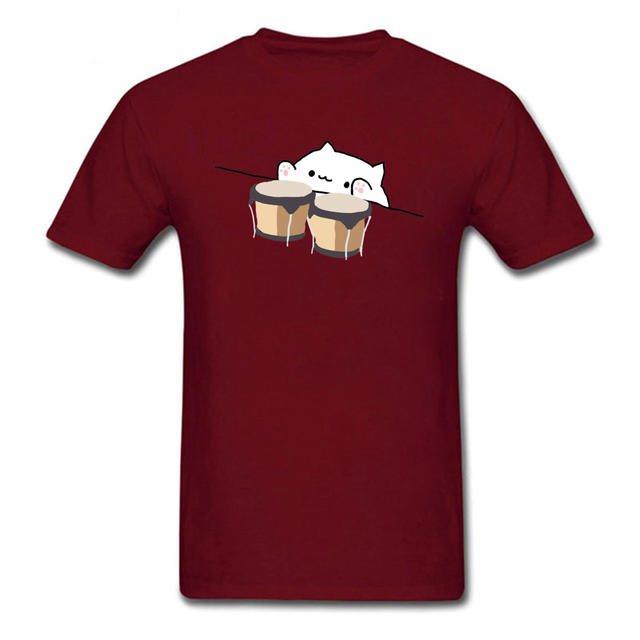 BONGO CAT WITH BONGOS Cute Graphic Men Tshirt Kawaii Cat Funny Design Hip Hop Jazz Reggae Music T Shirt Cotton Clothes