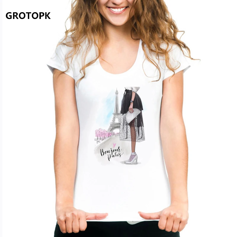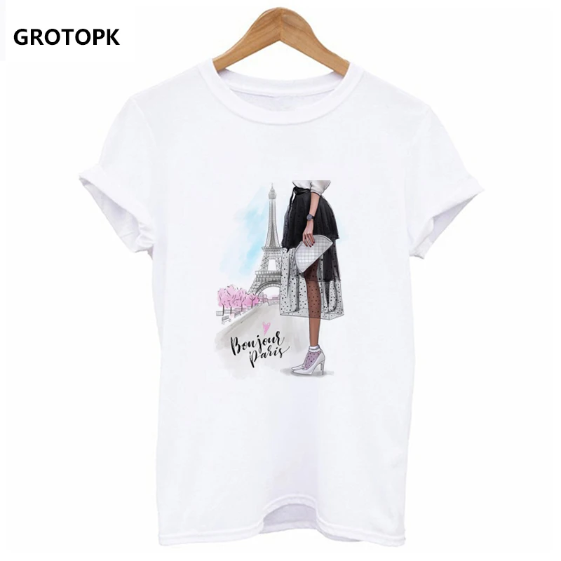 Bonjour Paris Female T-shirt Punk Harajuku Short Sleeve White Tshirt Tee Shirt New Arrival 2019 Tumblr Korean Clothes Streetwear