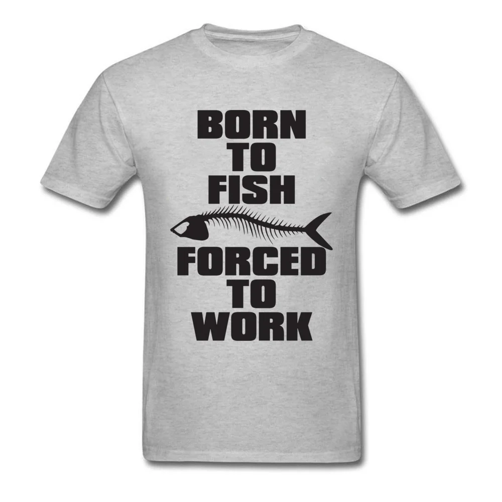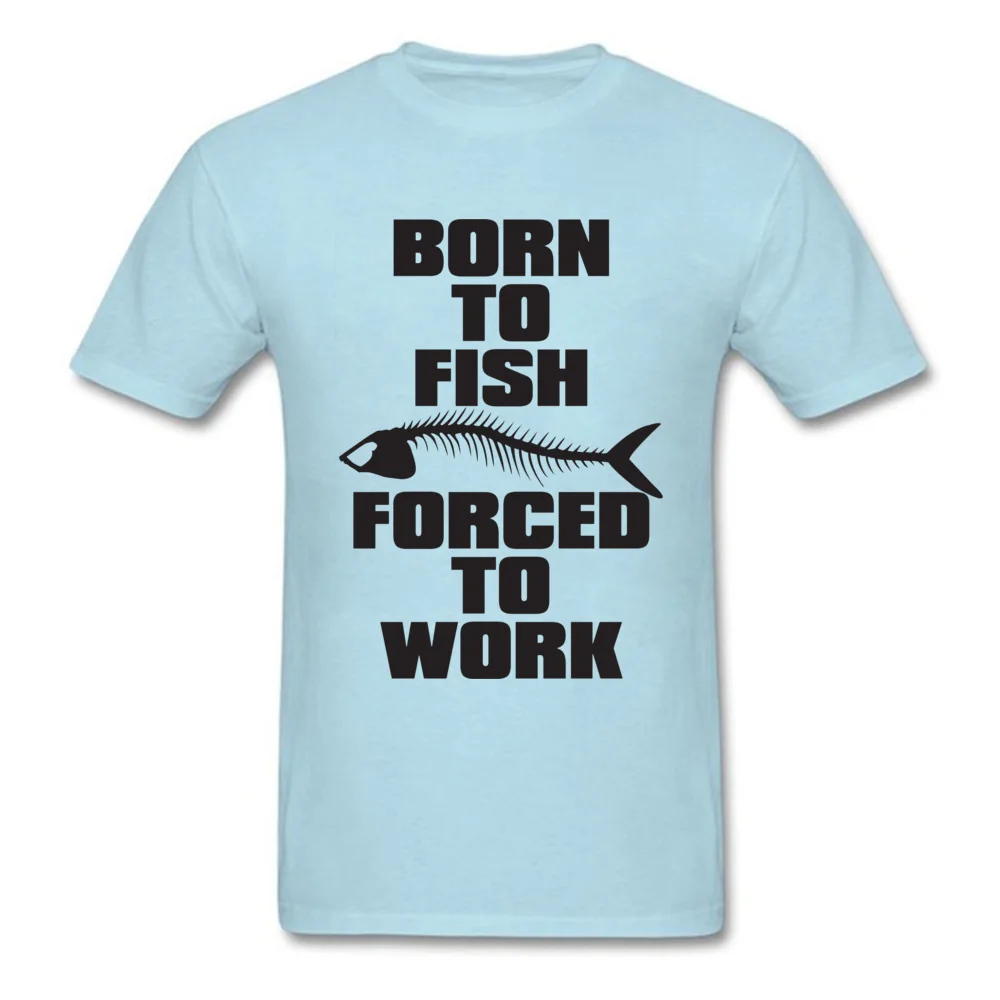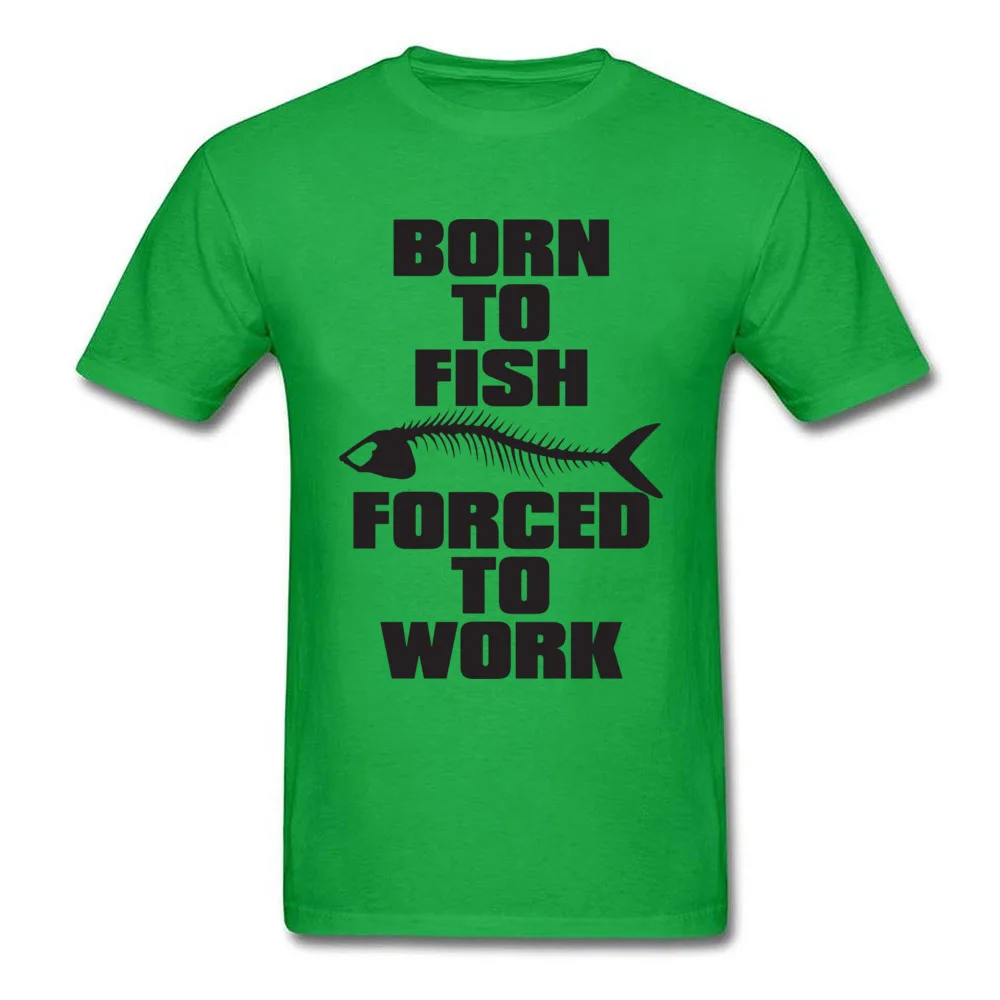 Born To Fisher FishBone Letter Tshirts Discount Crewneck Custom Short Sleeve 100% Cotton Fabric Men T-Shirt Normal Tops Shirt