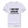 BTFCL Funny”I NEVER ARGUE” Letter Print T Shirt Women Men Cotton Korean Hip Hop Vintage Harajuku Christmas Tshirt
