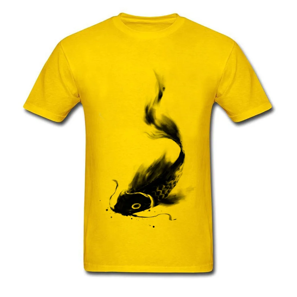 Product Name: Casual Koi Wash Tops & Tees For Men Discount Mother Day Crewneck 100% Cotton Black Ink Print Top T-shirts Homme Tee-Shirts