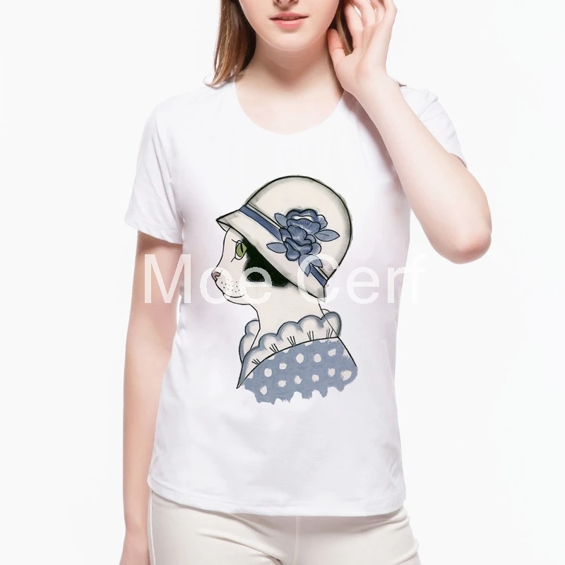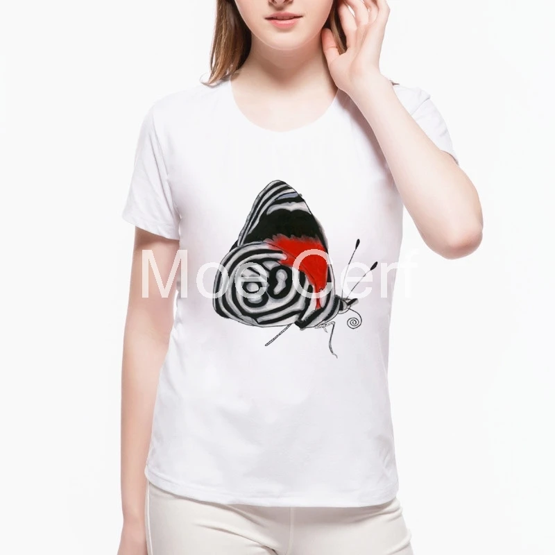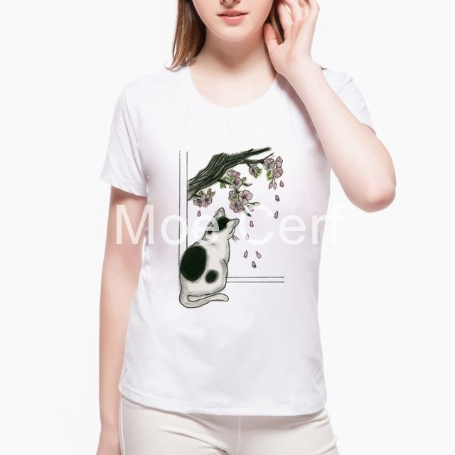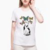 cat looking butterfly Print Women t shirt Summer Casual Funny t shirt For Lady Harajuku Top Hipster Tumblr tshirt women L21-22