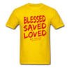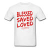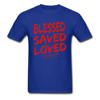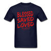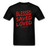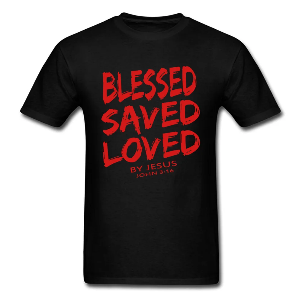 Product Name: Christian Jesus Tshirt Quotes BLESSED SAVED LOVED John Bible Lines Red Title Mens T Shirt Best Gift Retro Style Male Shirt